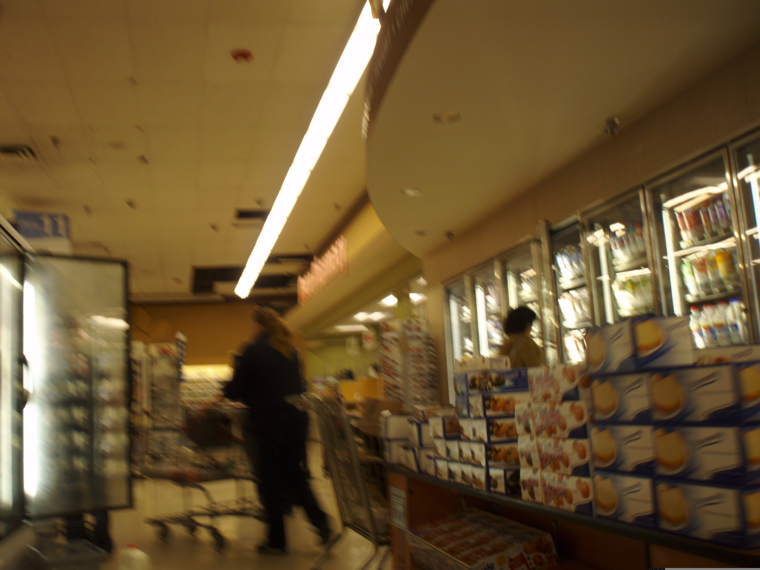 The takers. I can't believe it happened right in front of me. The woman pushes the cart, the man is behind the open freezer door.