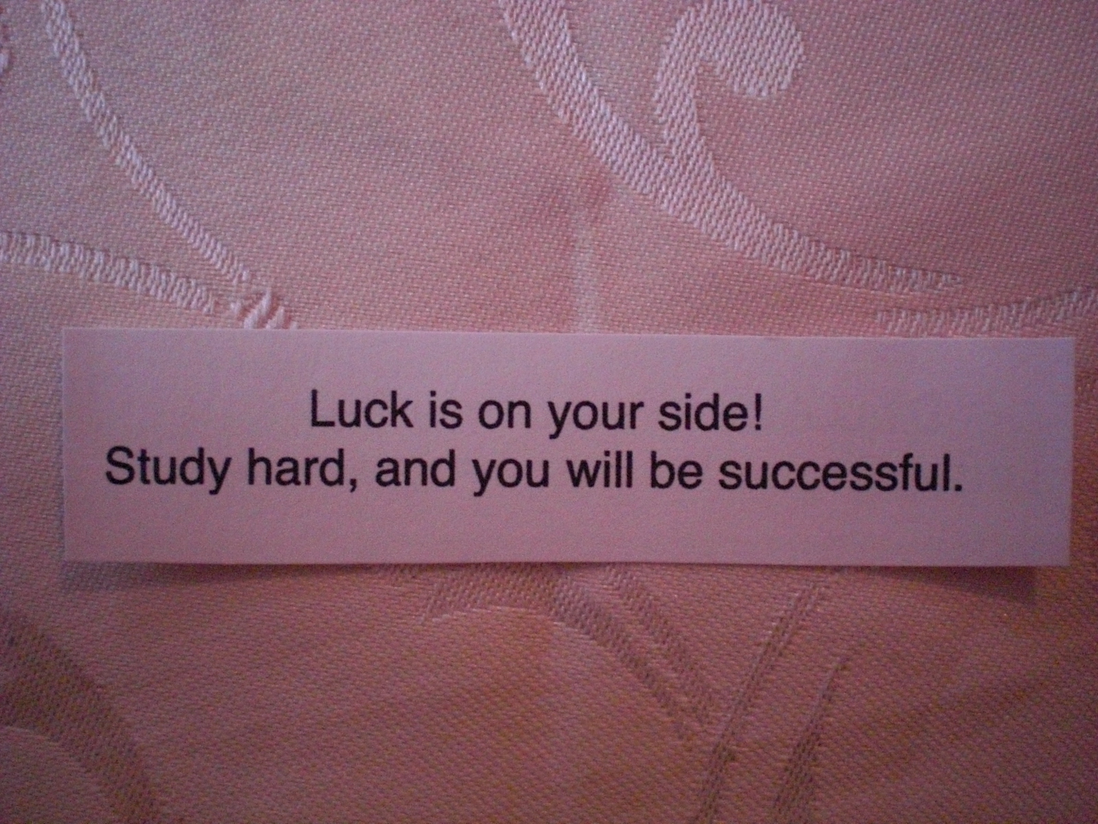 Since exams are inching closer and closer by the minute at the university I attend, I thought I could give some of those poor souls spending hours a day in my institute's library (Department of Asian Studies) a motivation boost. So I made little Fortune Cookie slips and placed them in books especially needed for the exams coming up and papers due in two weeks' time.