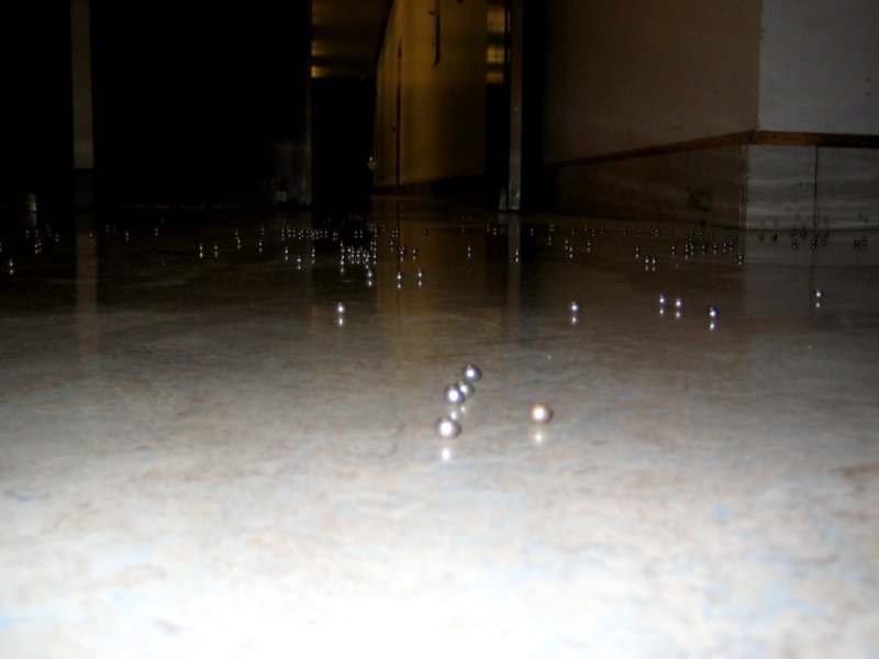 so. what i did. i found a stairwell on campus that had really nice echoes. and poured them down. i wasn't pleased with the aesthetics so with the help of jeanette, picked each and every last one of those little bastards up, and did it again in a prettier stairwell. of course the video didn't come out for that one.. oh well. then i left my pretty metalic babies scattered all over the main floor of this building on campus.. for all the little freshmen to trip on, on their way to their finals...