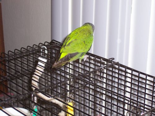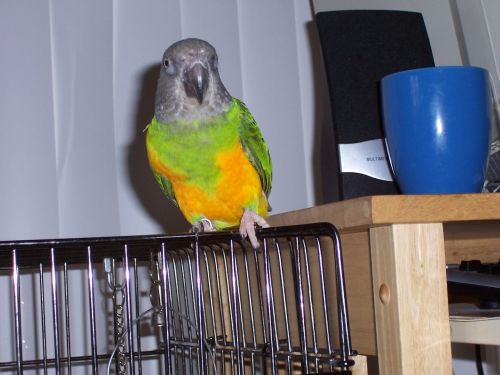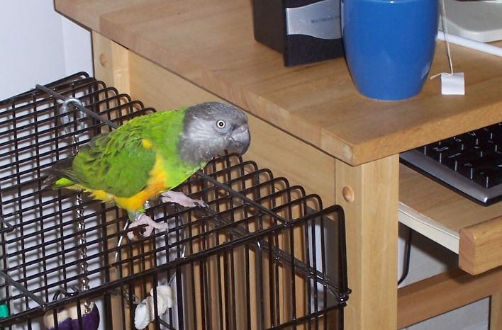 Meet our subject, a Senegal named Syn. He is, alas, a refugee, not only far from his native land but also cage surfing.