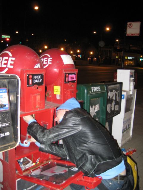 This was the only clue we placed while someone was watching. A tall, thin girl was waiting for the bus and we did not feel like waiting around in the cold until her bus came, so we simply told her we were preparing a treasure hunt and asked if, if she had not seen us putting the clue up, she would think to look up and see it taped to the roof, and she said that she would not. People don't spend enough time looking up.