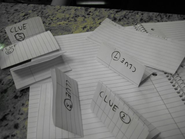 I am SO going to do this task! I live in a relatively small town, so I might post all the clues around the town center.