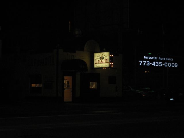 March 16th, 2008 10:38 PM / Location: 41.903522,-87.66714We went to a local Mexican restaurant to hatch our plot. There are 3 of this restaurant on the same block. The photos show all 3 locations but sadly do not pose an answer to the question of why there are 3. Though, we do have a photo of the question itself.