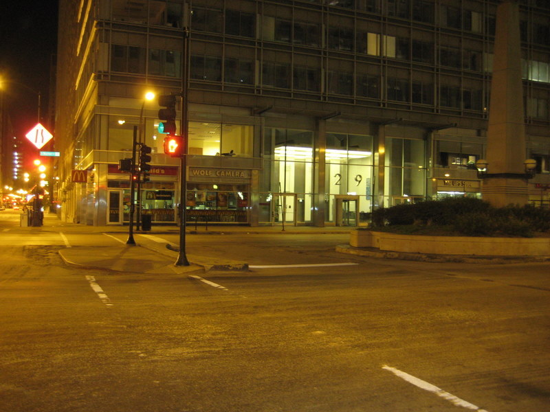 a wide downtown street, utterly devoid of either vehicular or pedestrian traffic. staring down the street and seeing this kind of emptiness never stopped fascinating me as i did this task.