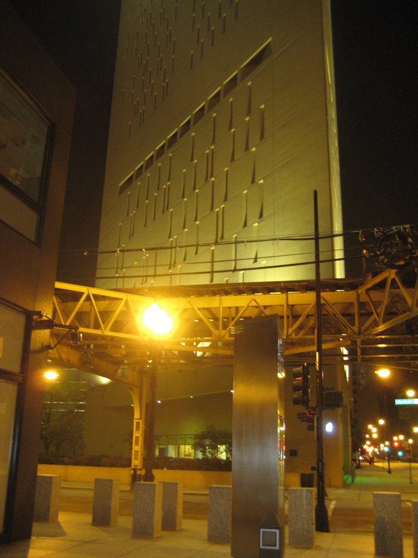 Downtown Chicago, everyone's neighborhood and also no one's. Millions of people come each weekday to work, each weekend to be tourists, but few spend the night. You can buy anything from expensive suits to cheap souvenirs, from the most gourmet and rare of cuisines to the most mundane McDonald's,