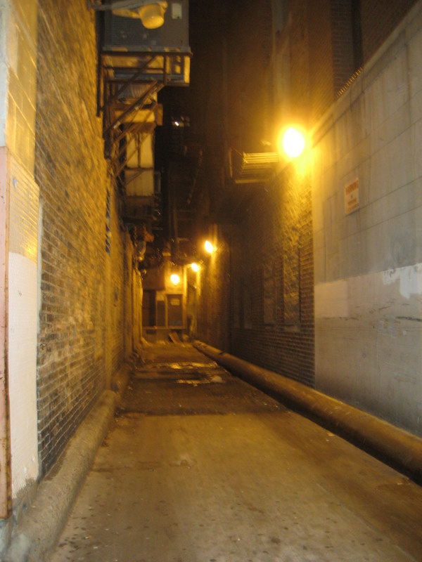 it was sometimes easy to think all of downtown chicago is shiny and clean, even at night. this tiny, shabby, piss-stinking alley reminded me otherwise.