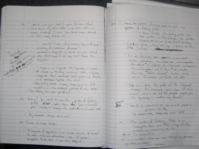 If you're writing a paper on Borges' use of labyrinthine imagery and techniques in his short fiction and poetry, here are some notes you can use.