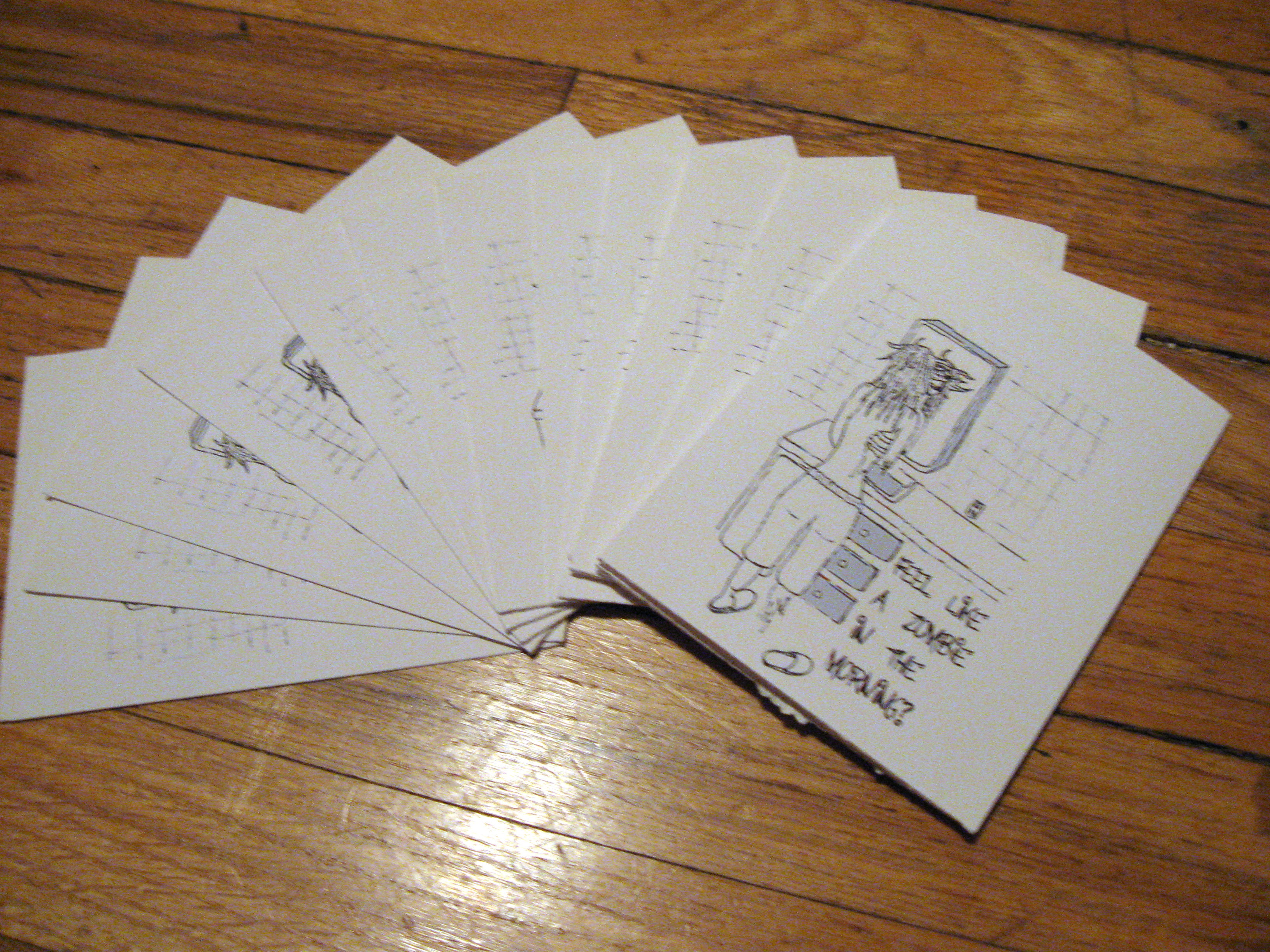 March 7th, 2009 1:56 PMI needed Zombie History Month greeting cards to distribute, as promised in the informational zombie history pamphlets I'd already passed out, by way of the zombie history information centers.