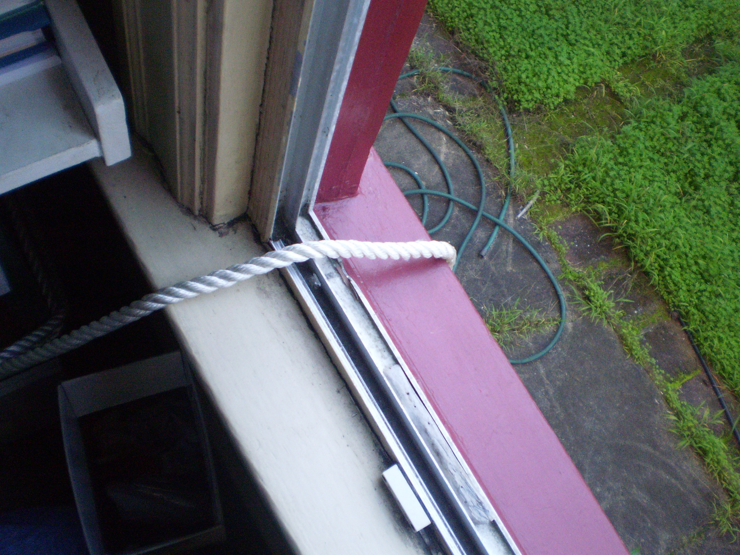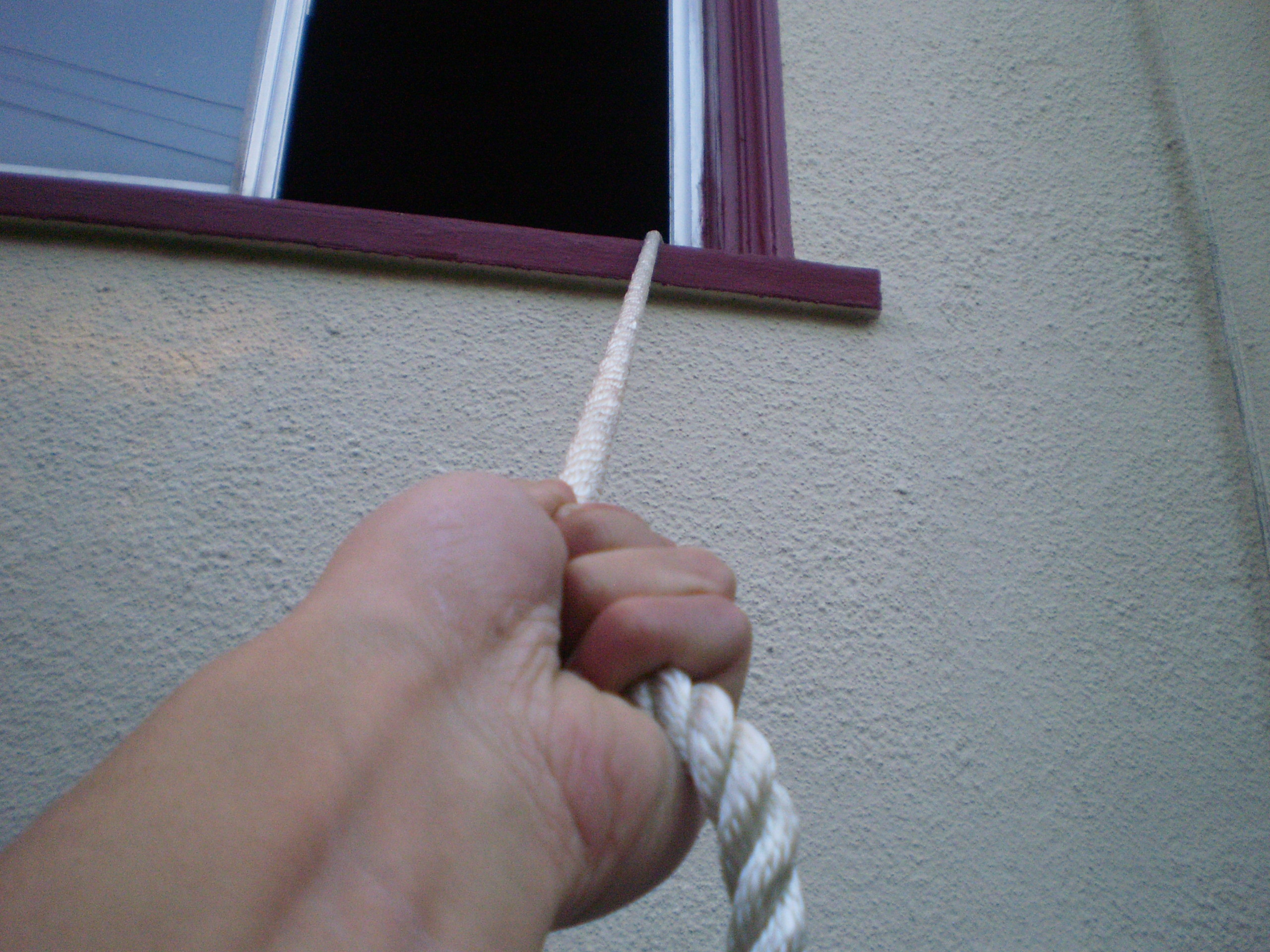 I have remained a prisoner in this room for six months now and am wasting away in captivity. There was a shred of hope for me, an unlocked window, however the distance from the window sill to the ground is too great to jump without making a lot of noise. Climbing back is also futile as the window is too high up and the windows lock automatically after being shut. Recently, a contact of mine managed to sneak me a package by disguising herself as the local electrician. Inside was a note apologizing that she couldn't supply me with anything more than a piece of rope. Now, my plan for freedom in the night become a reality.