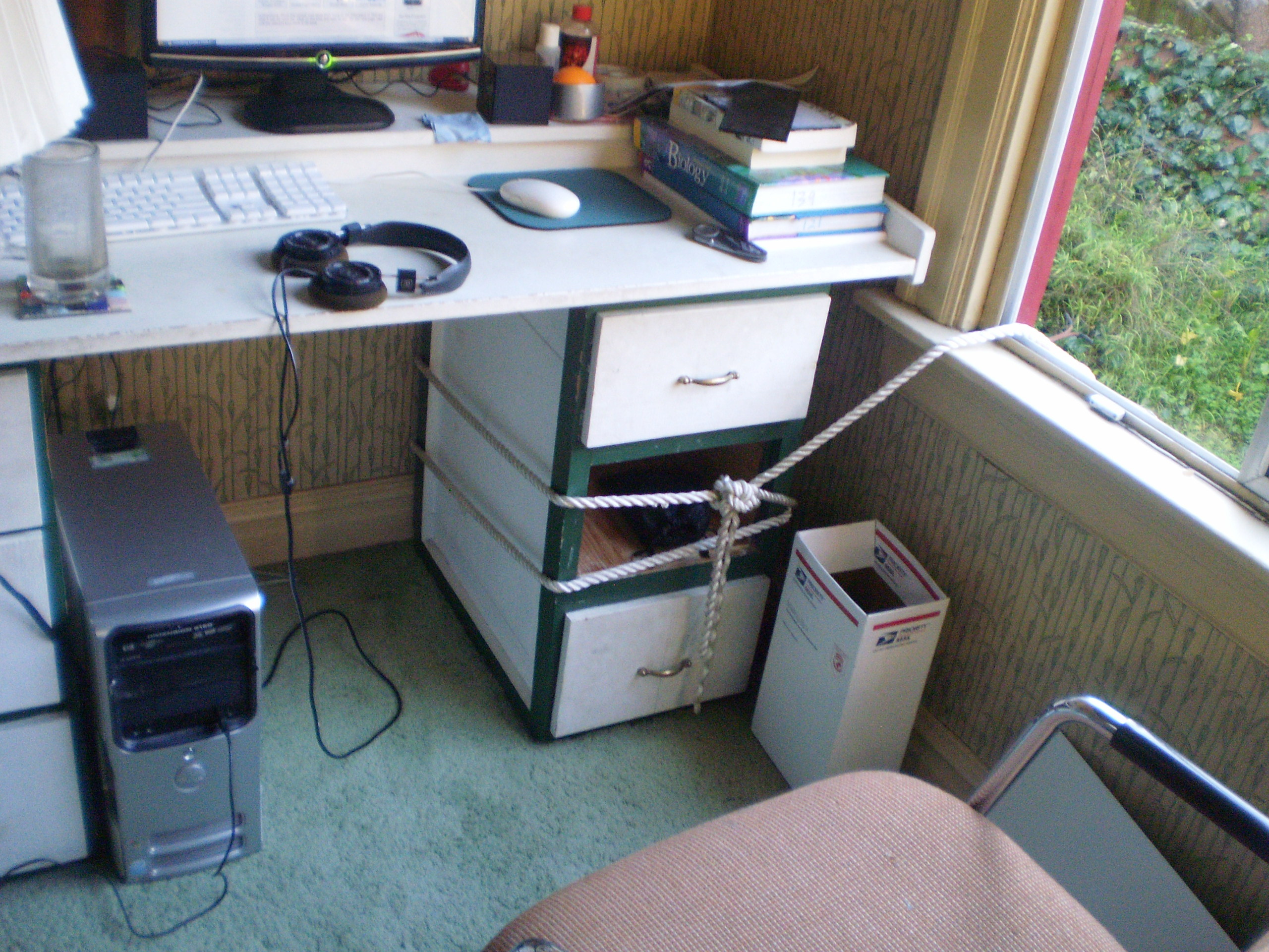 So basically I tied the rope to a part of my desk and Shazam! This rope isn't intended to be used while on an adventure, but to begin and to retire from late night adventures.