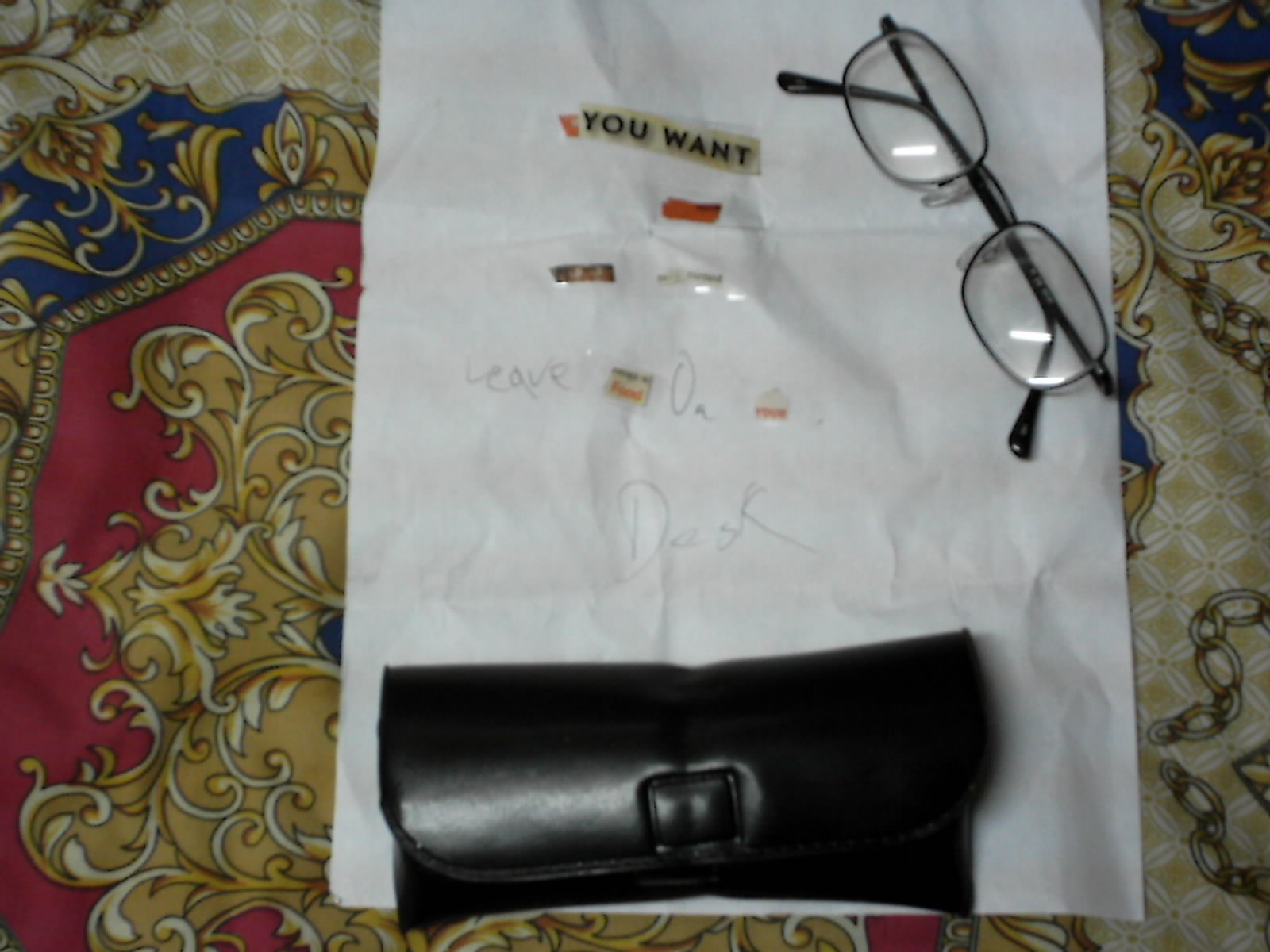 My co-worker made the mistake yesterday of going to breakfast and leaving his glasses on his desk. Of course, the first thing that came to my mind was :Ransom time! But I had a limited time to accomplish the dirty deed. I had just thirty minutes to gather all the supplies (paper, tape, scissors, and a magazine) and construct a note. I grabbed everything and locked myself in the gals room (see restroom photography.) It turned out to be a lot harder to find the appropriate words than I thought it would, and I didn't think I'd have enough time to cut out individual letters. So, I had to pen in a few words. Sure, now I was vulnerable to being caught through handwriting analysis, but considering the fact that I had made the note without wearing gloves, it's not like I was really concerned about secrecy. I dropped the note off on his desk while no one was looking and awaited his arrival. He took it fairly well, but was a little irritated. He grabbed the nearest food he could find and left it on his note on his desk. But then, he continued to stay at his desk! Finally, he went on a little errand and I swapped his glasses for the note and food. I'm sure I'm the primary suspect, but he hasn't said anything to me yet. Later, I brought him a muffin from the DFAC to make him feel a little bit better about his day. (He was a bit sad to discover fingerprints on the lenses of his glasses) OOPS!