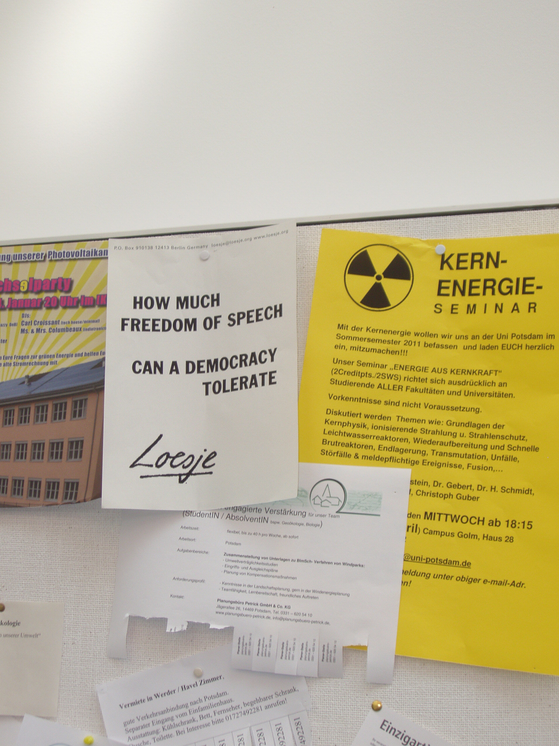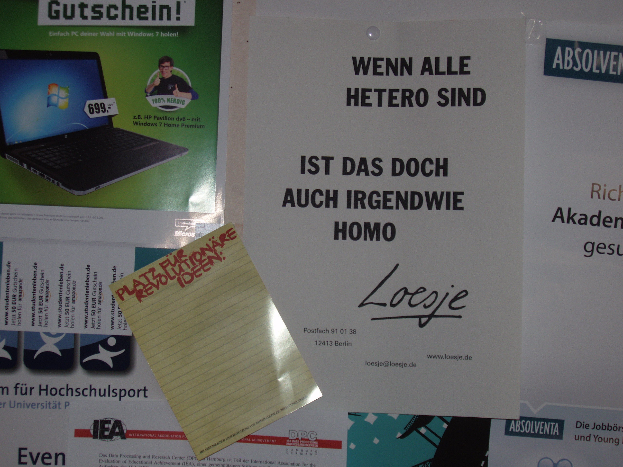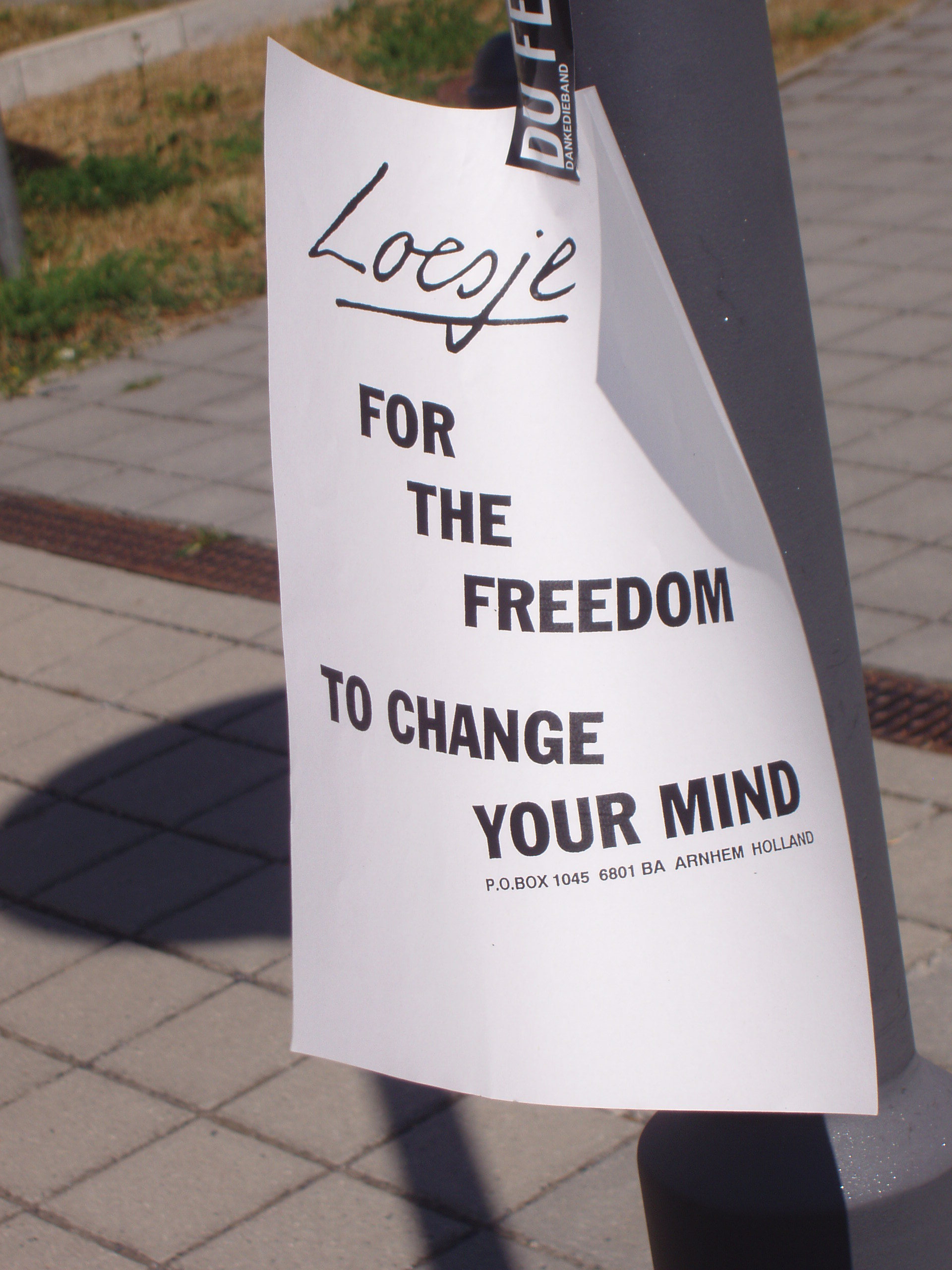 As for the Loesje posters, they seem to relocate quite quickly. However the evidence points towards students taking them to put them up at home.