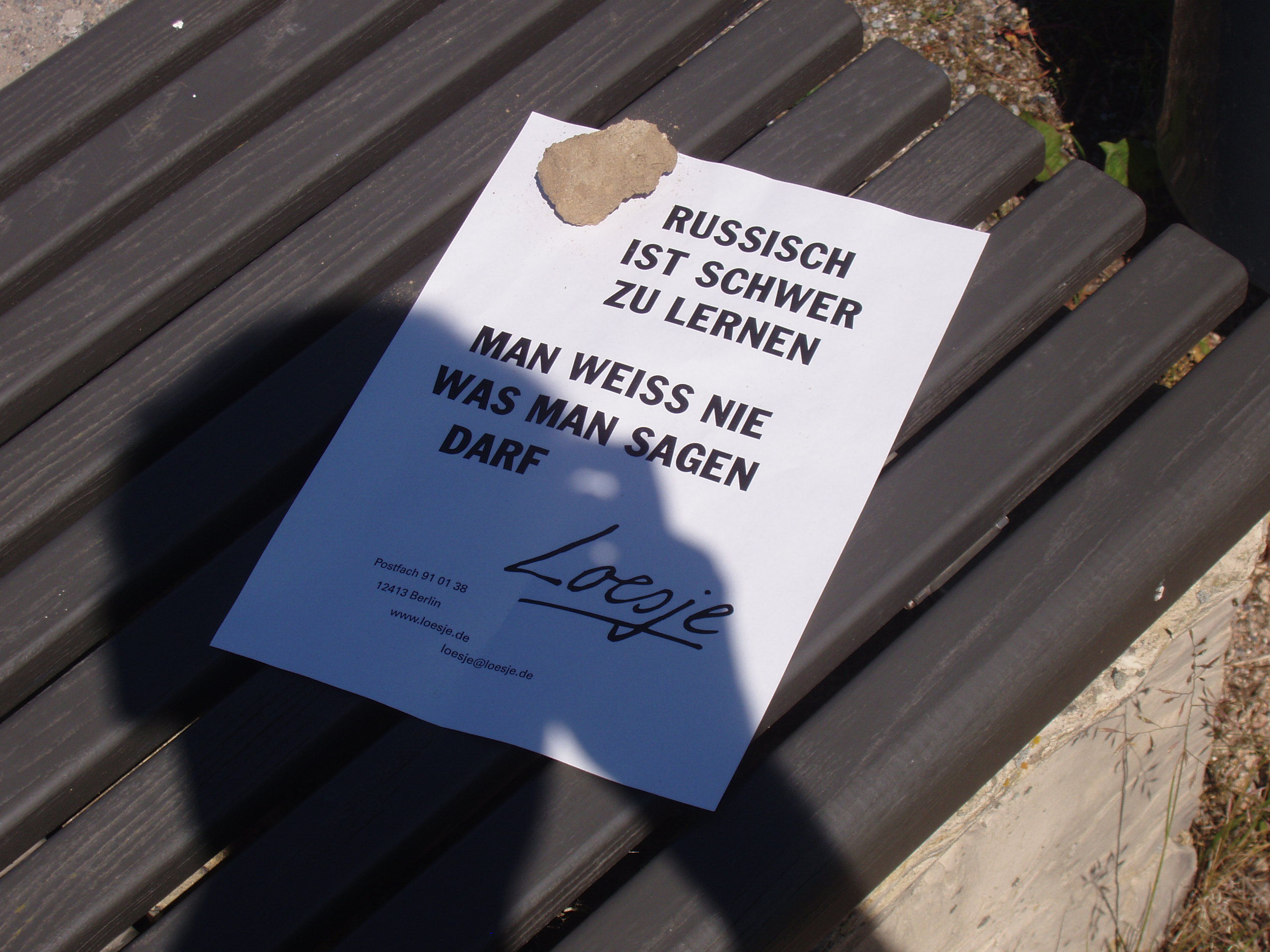The "PLATZ FUR REVOLUTIONÄRE IDEEN" paper isn't mine. It might be cool to copycat on a larger scale though. On a related topic, I want to repeat this action: