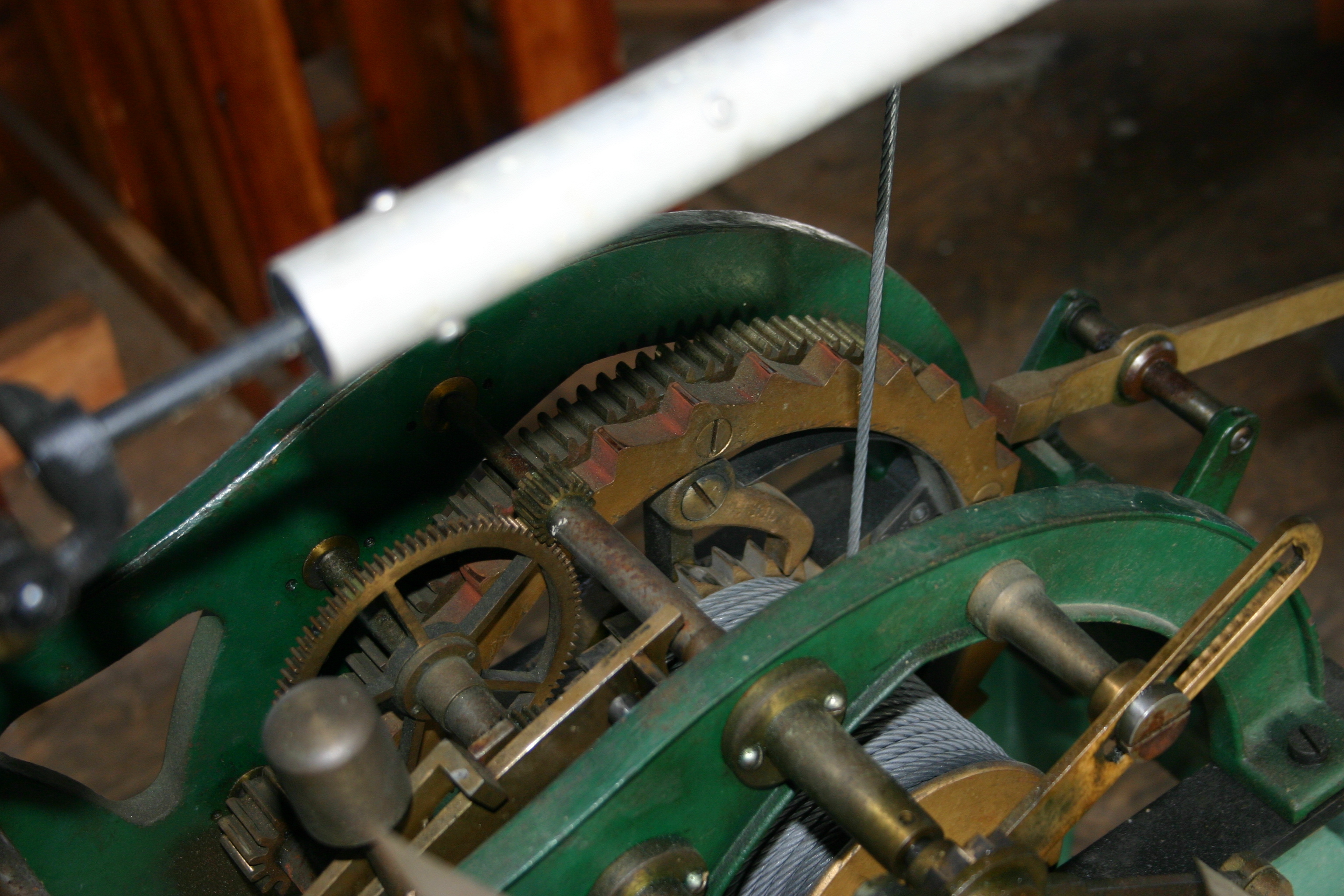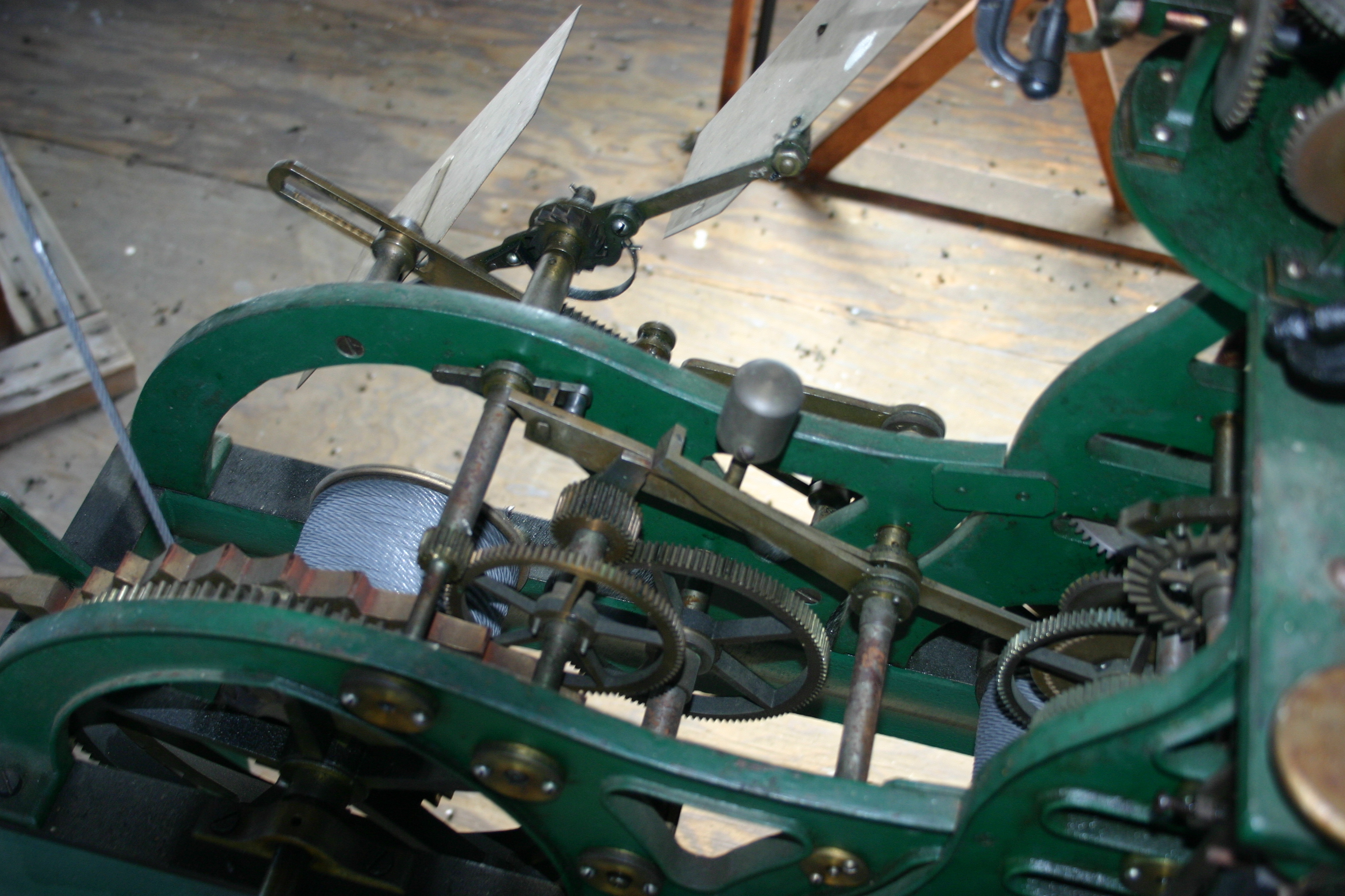 Part of the clock mechanism. Unfortunately there wasn't enough room to back up far enough to take a pic of the whole mechanism.