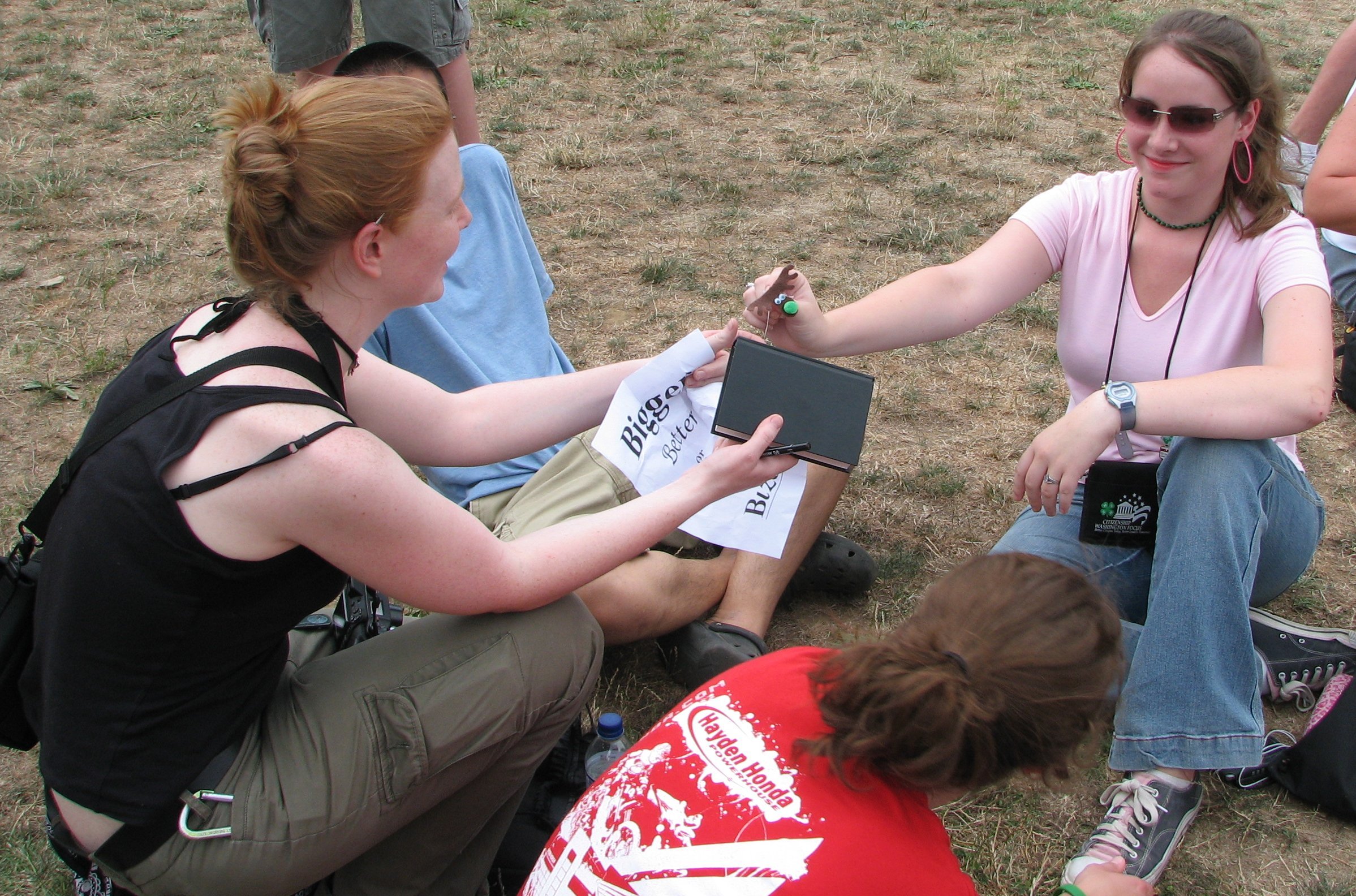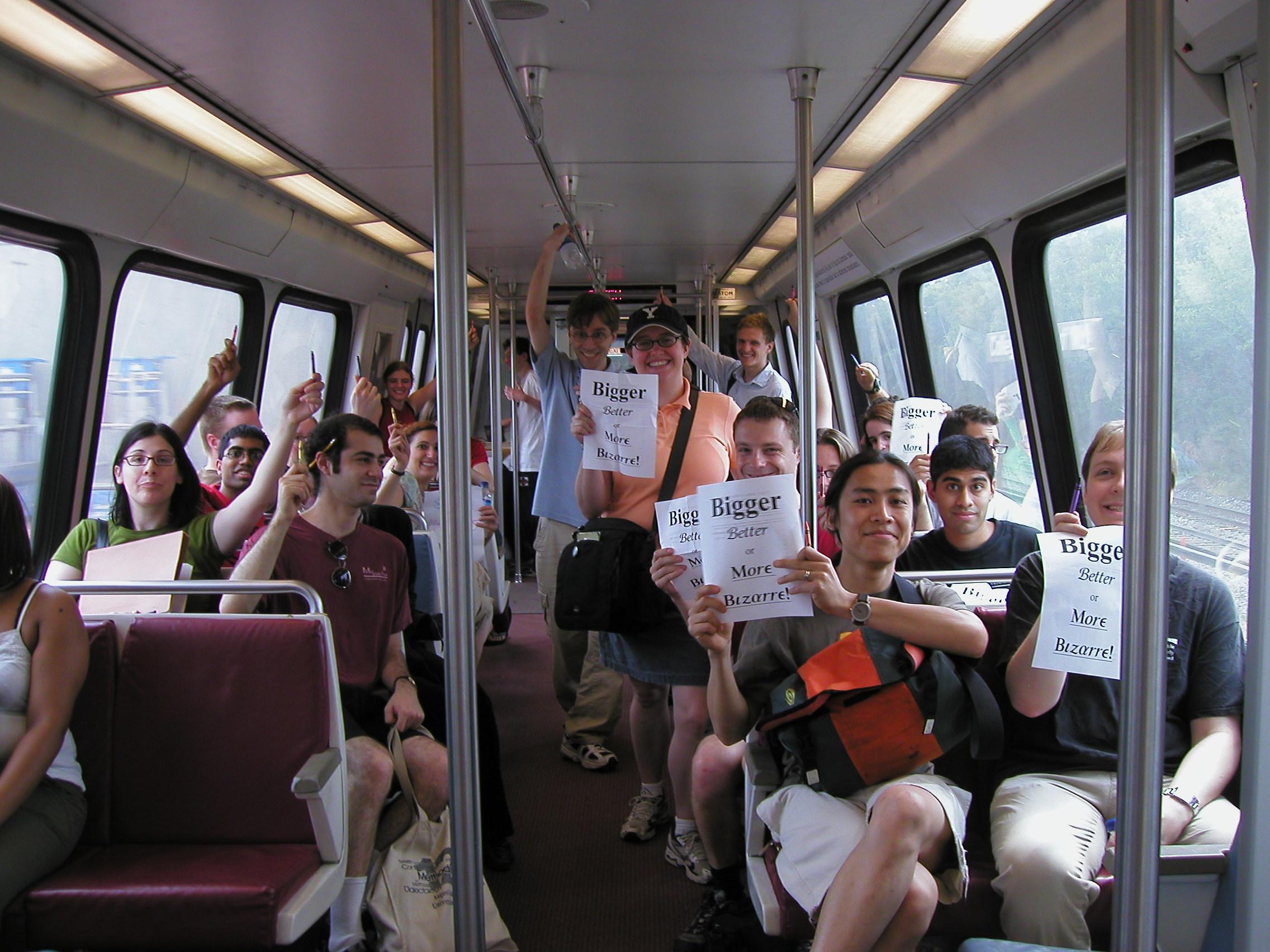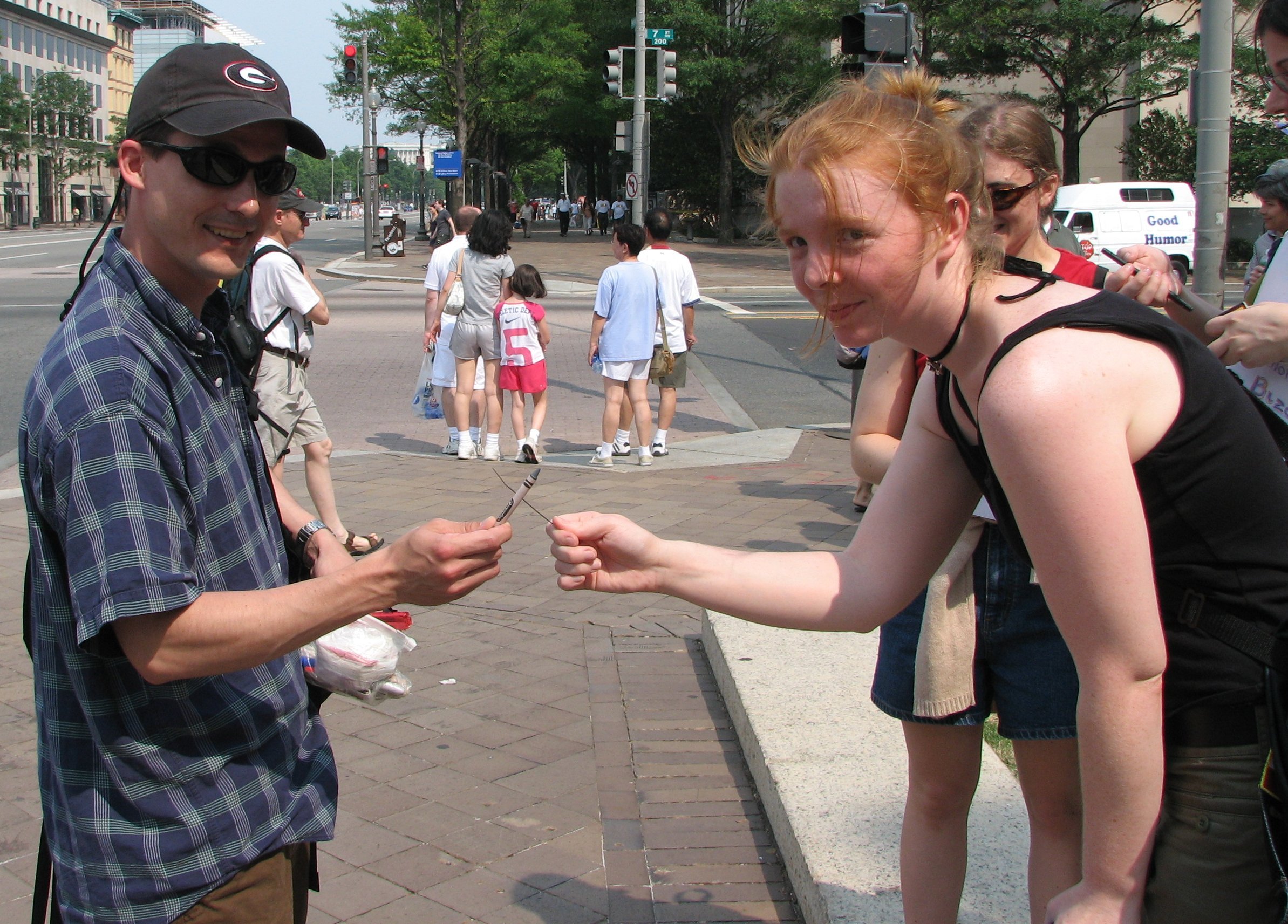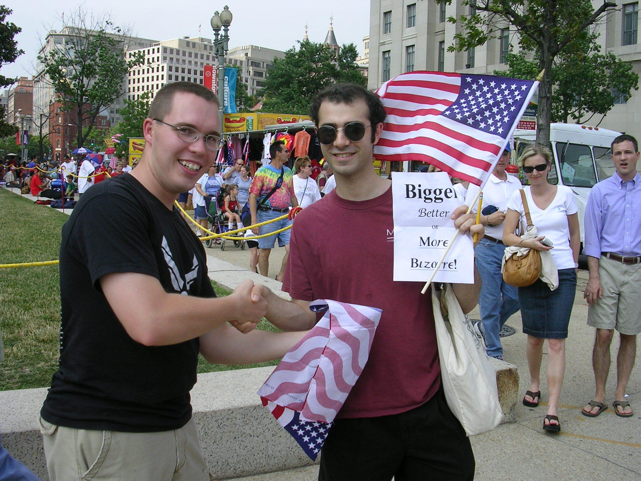 July 13th, 2007 9:23 PMJuly 4th on the National Mall really is the best time to do this. Here in Washington, DC, there were hordes of people waiting for fireworks and visiting from around the country or from around the world. People in a good mood, waiting around, and with plenty of stuff to trade. We were also holding a house party, containing 30-some people of strange dispositions and curious natures. It seemed like the perfect time to do Bigger, Better, or More Bizarre.