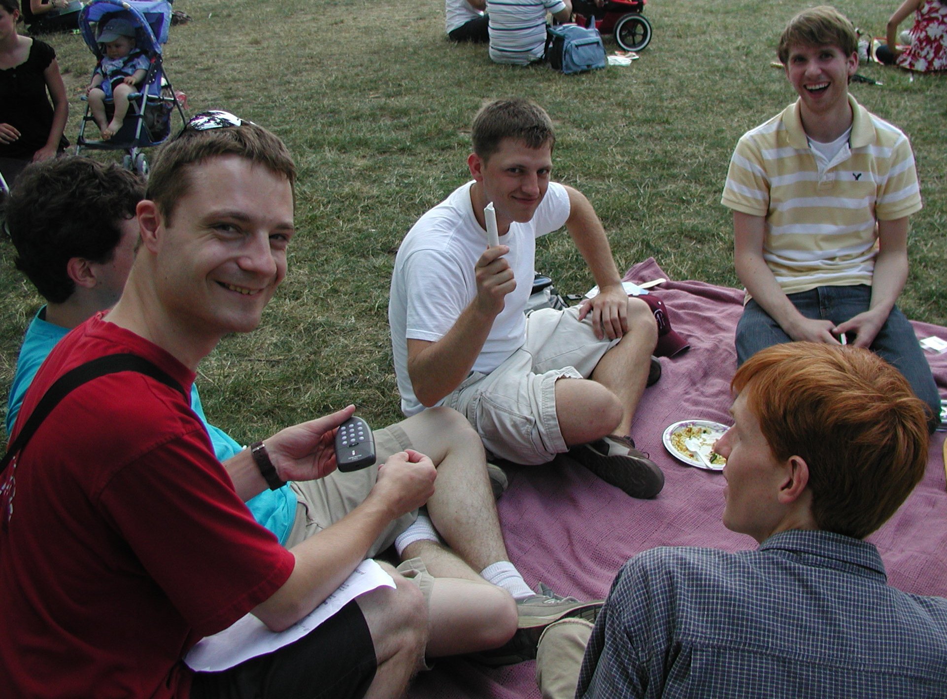 Knowing the value of a tampon to a Frat Boy, I immediately set about looking for groups of young humans with XY chromosomes. My target was not far away, and a group of said boys were eager to help, althought their inital offers of empty bottles not exactly 'better' than the item I was holding. Perserverance paid off, however, when one young gent finally scoured his bag, extracting an 'interwrite (TM) PCS' schoolroom interactive handset. Complete with batteries, red, green *and* yellow lights, this high-tech, much better item remained in my hand until, like Wimbledon so much this year, rain stopped play.