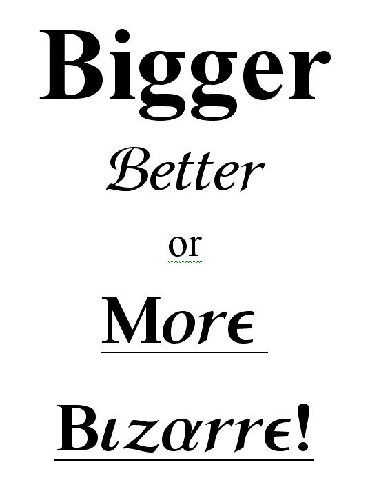 Bigger, Better, or More Bizarre by Innocuous Invention, Spidere, High Countess Emily, Orange Magister, Neil Werewolf, Tony Vila, K prime, Flitworth, Coreopsis Major Bloden Melen