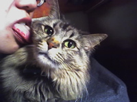 celina copperplate suggested it and so i complied (she is so winsome, it's impossible to say no!) and, lo and behold, the entire time i licked my kitty and took pics, she purred. & purred & purred. apparently, licking = love. funny that i didn't equate this sooner since she likes to purr loudly and tries to groom me, which is hilarious since i have long hair and she can't seem to get to the end of the hair. hehe. :)