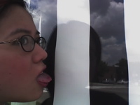 the best part about taking this picture was that there was a strange man in his truck chillin' around the corner and a college student walking past me and cars going down the busy street. i would have waited until i thought no one was looking, but i was in a hurry. and my tongue was already on the liquor store window, so what could i do? :p
