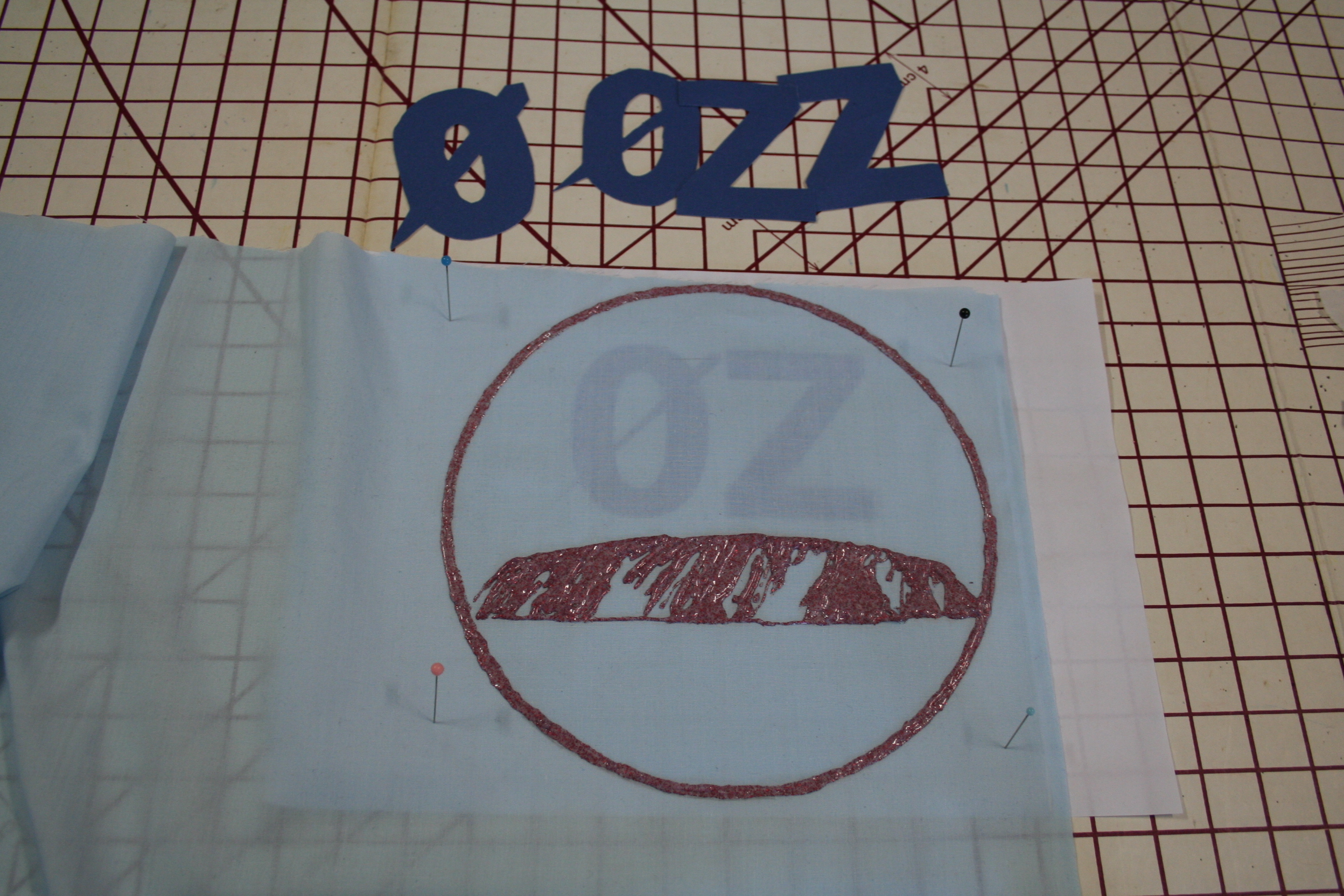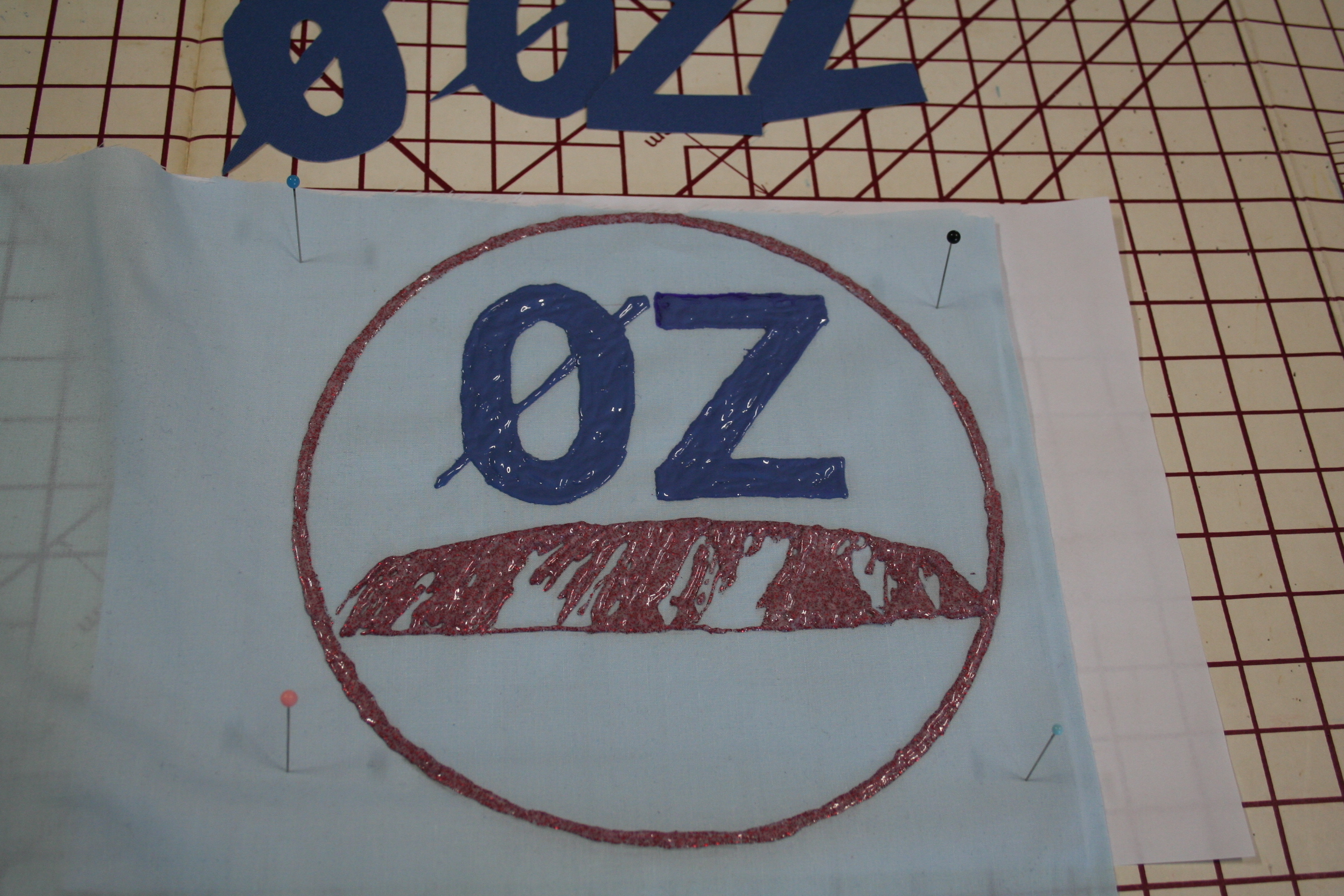 In this set i made two patches, one for a friend who likes sparkles. i have coloured in the red ularu with Red Glitter PolyMark fabric paint.