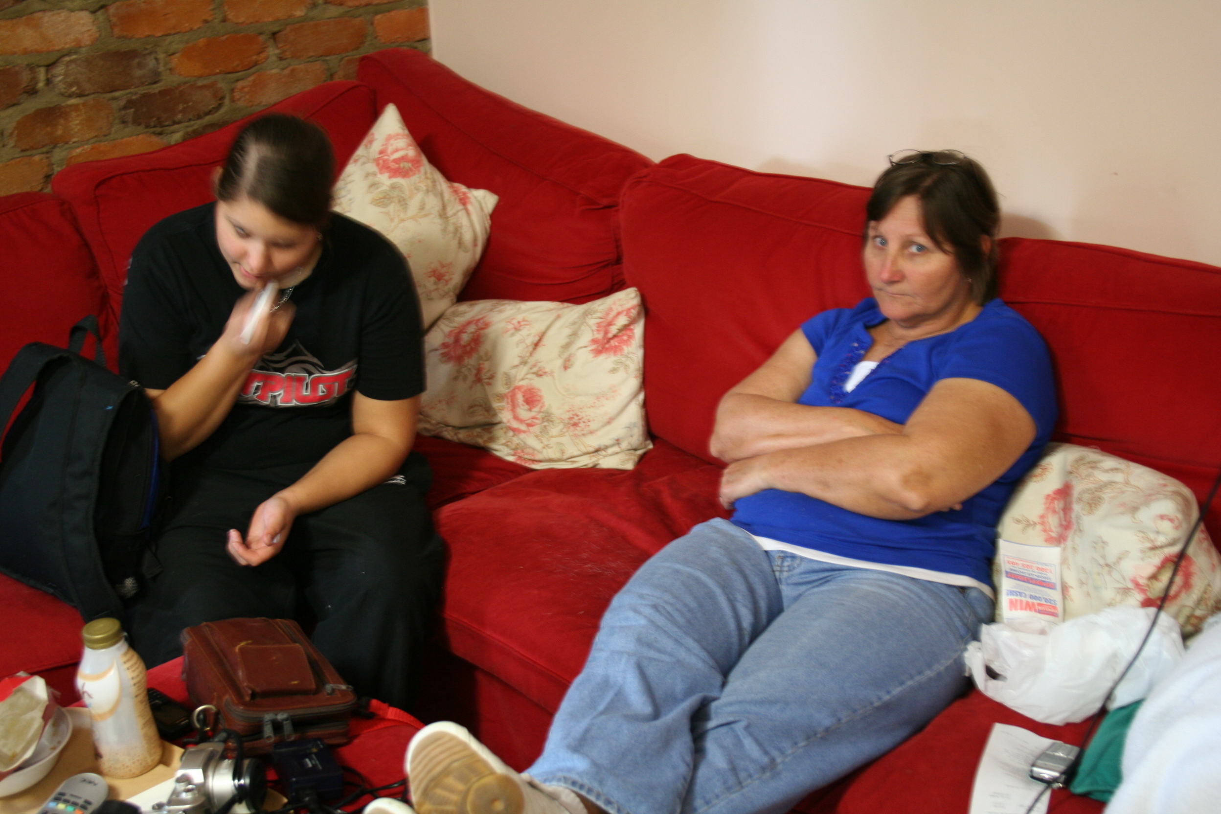 With a towel wrapped around her his mother carried the pale bleeding youngster into the dining room and wrapped his leg in a tea towel and held the flapping meat closed. she instructed his sister to fetch the neighbour who arrived promptly and continued to hold the childs leg together while his mother put some clothes on so she could arrive to the hospital not naked.