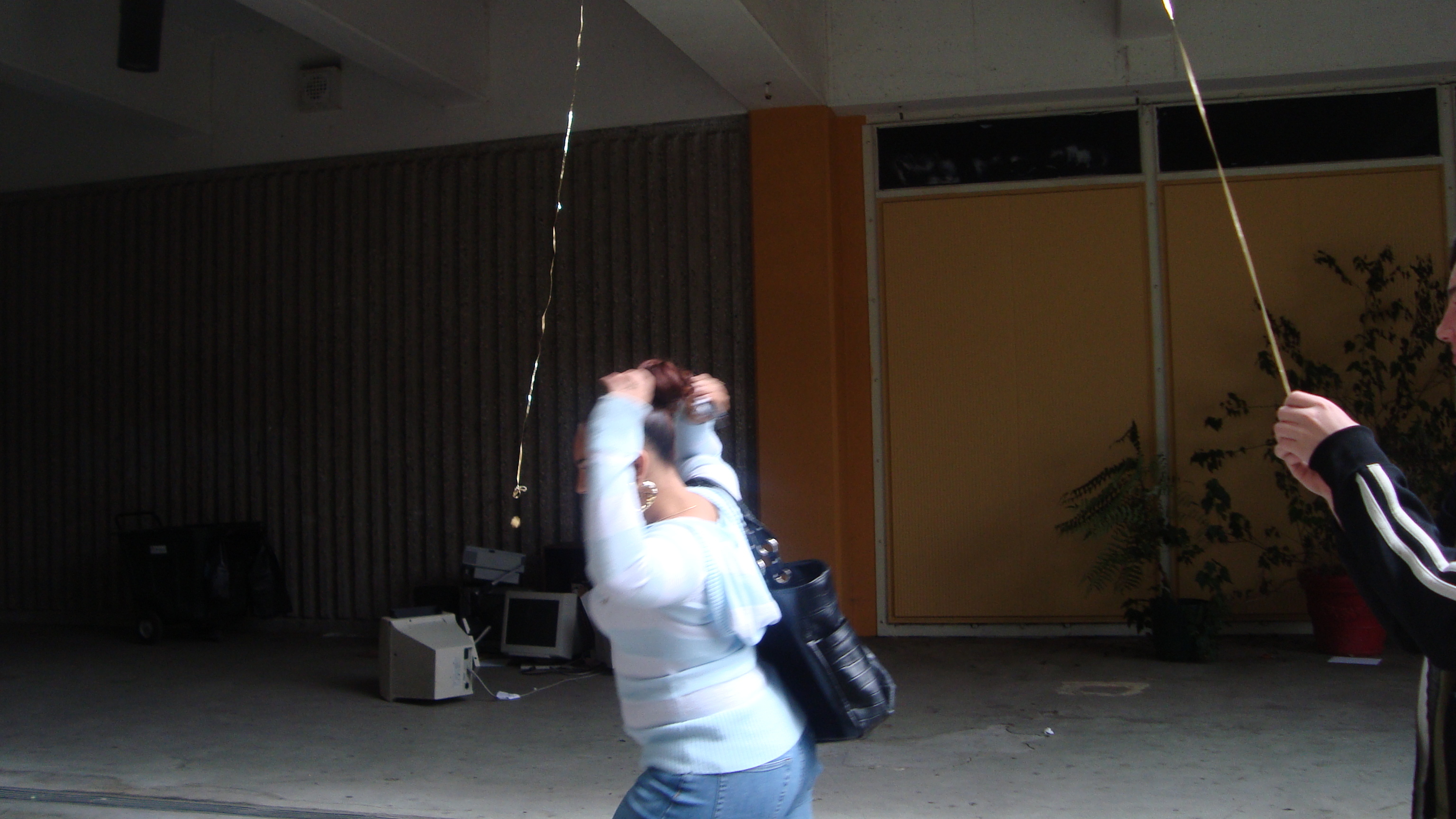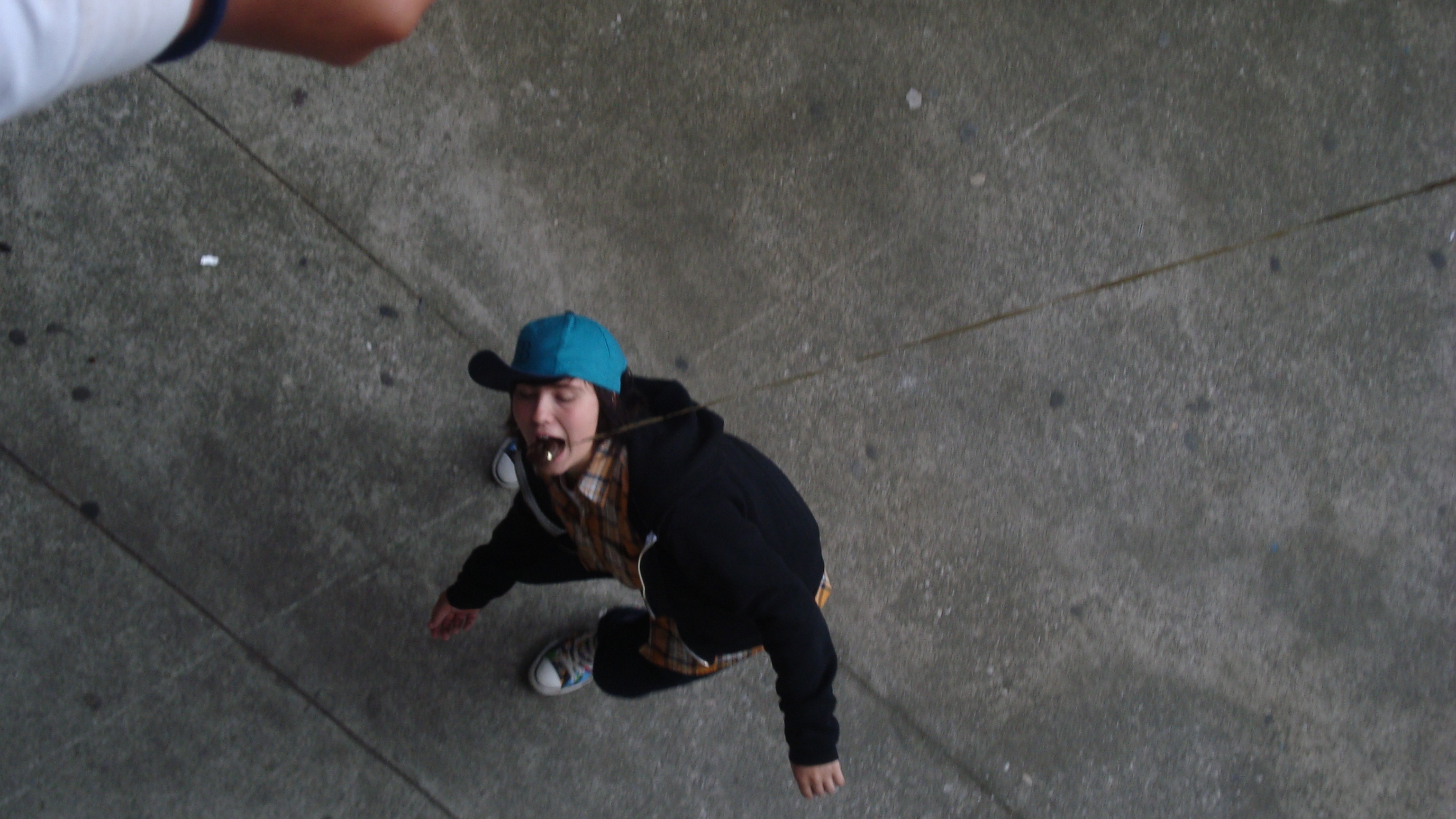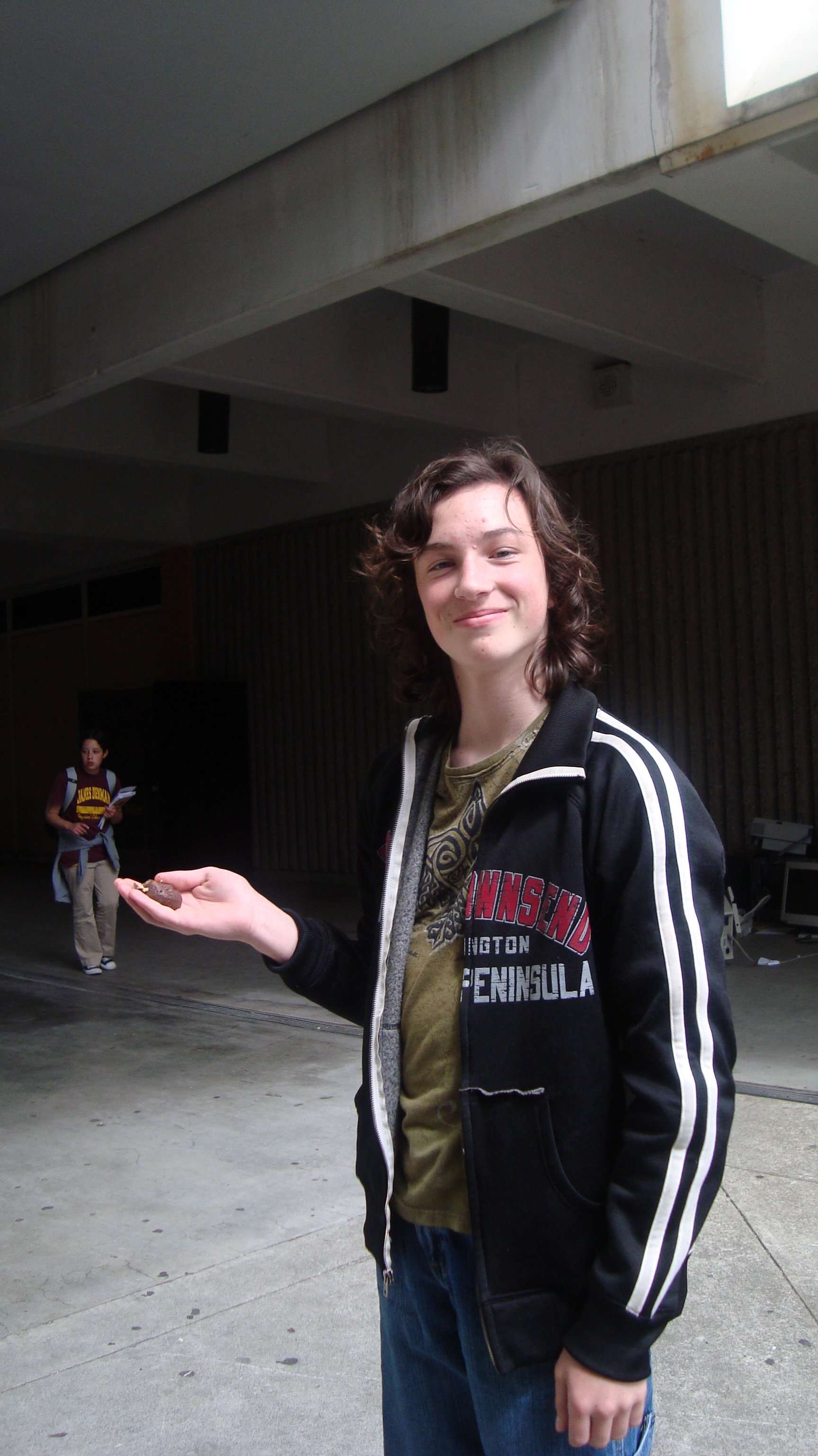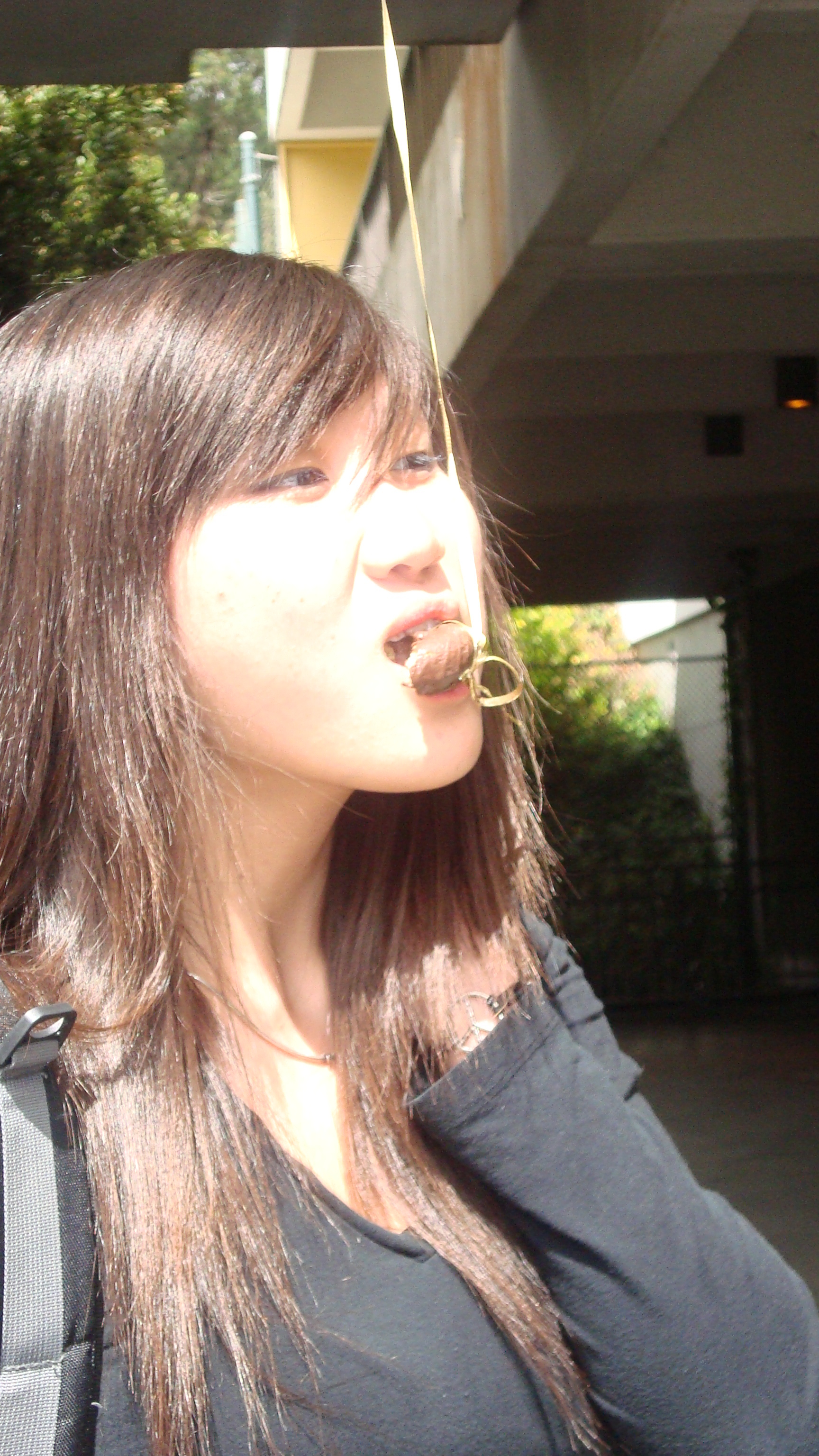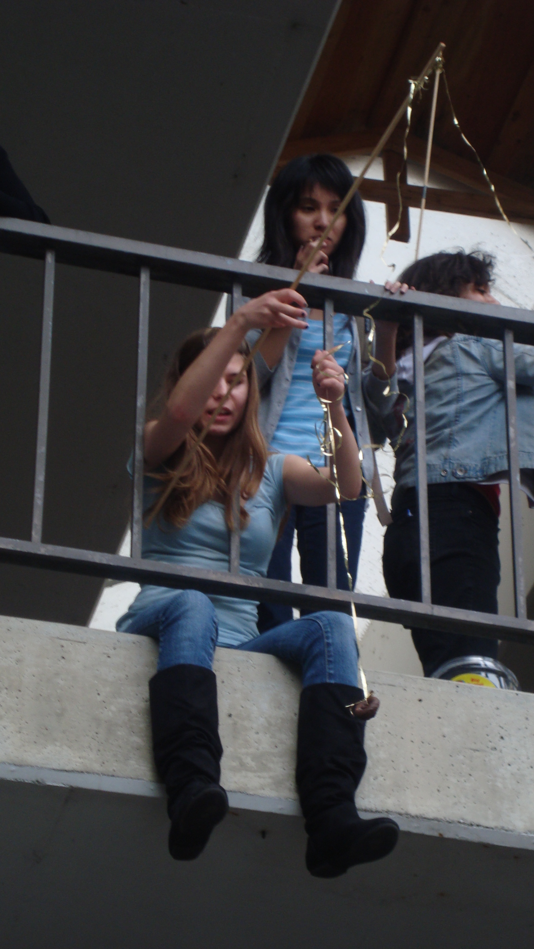 September 20th, 2009 9:30 PMWe first went to the dollar store and bought a package of five or six donuts, then bought a dowel from Cole Hardware to make a rod. Finally, we sat down at Yerba Buena and strung it up. The first girl came, a chubby little strawberry blonde in a pink outfit. She screamed: "I want it!" and took it. That was our first fish. We didn't get a photo of it, because Bryce ended up downstairs a little too late to take photos. After this, we were soon removed from the vicinity by the Yerba Buena Fuzz. We continued over a Bart station, but it was relatively unsuccessful. Finally, we decided that teenagers were the best fatties one could find. Teenagers eat anything, and they eat it with gusto, so we went fishing on monday and tuesday in the quad at SOTA. Initially, people didn't know what to make of it, but eventually it gained popularity and we had a crowd by tuesday. It was an incredibly impassioned event, and was colored by the many different characters...we had:
