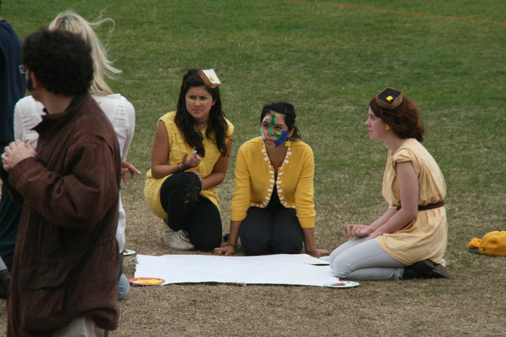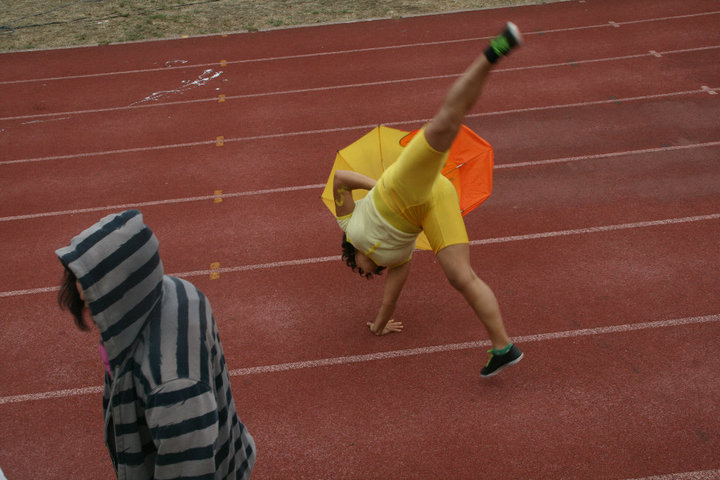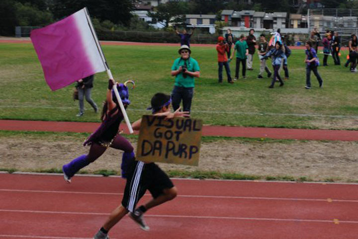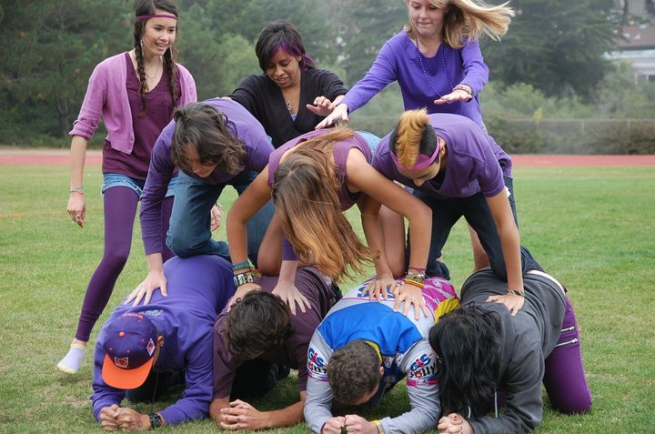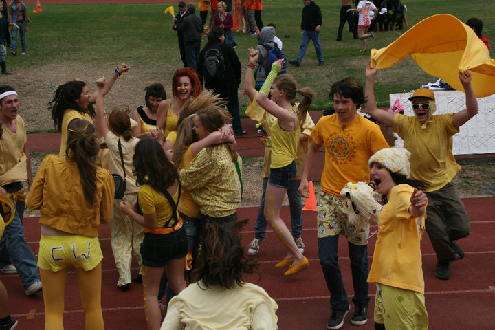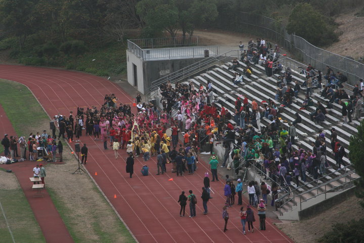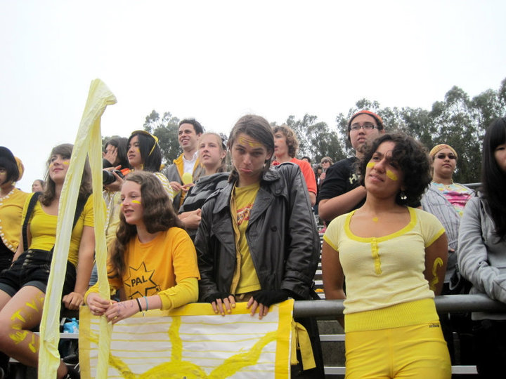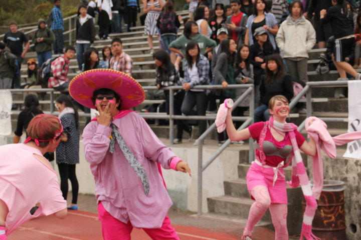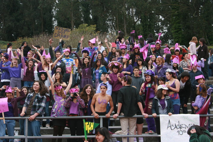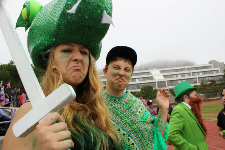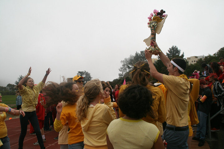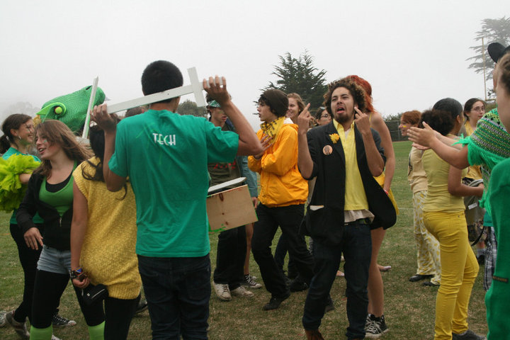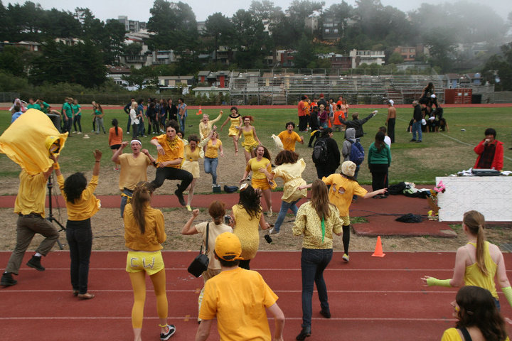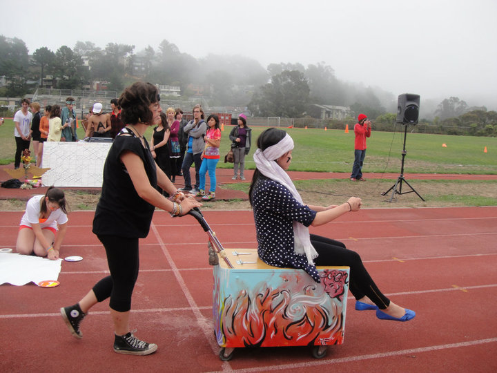 At the Glorious Ruth Asawa San Francisco School of the Arts and The Overnamed, we here have a little thing for all those scrawny art students to get all their sporty bullshit out of their systems, something cathartic that Aristotle would've liked, the pain and the grit of the field gettin' into their bones and screaming at them about why they don't like to do physical activity with such typical fare as the human pyramid, the three legged race, finger painting competitions for pete's sake...