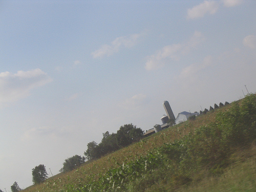 At first I was only going to count squares if I could photograph them for this proof. Since my friend was driving, he couldn't really play, and it was just the two of us, so I thought the photos would make it more challenging. But at 75 mph, my camera isn't quick enough. I'd sit with it ready and then it would take a while to see something, so the camera had powered down and I missed whatever it was by the time I got it going again. Or I just couldn't snap fast enough as we passed a barn or whatever. Toward the end of the Iowa segment, my camera started wigging out, not taking pictures but not retracting the lens either. So the state line marker had to be done with my camphone, which is really bad. I ended up scrapping the photo proof requirement so that I could actually play.
