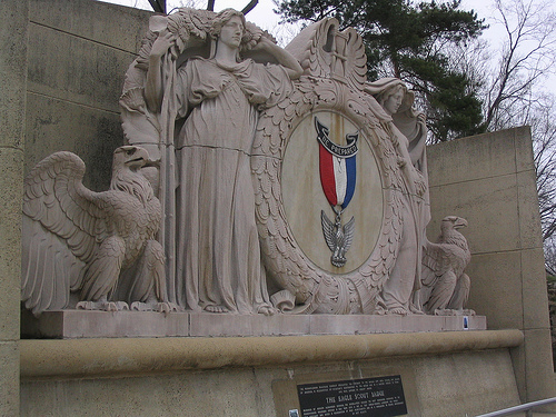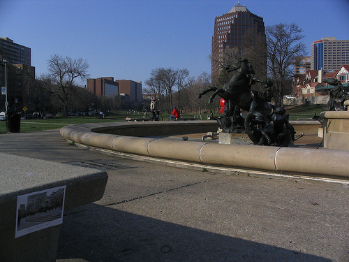 After NYC stupidly demolished Pennsylvania Station, Kansas City got one set of the four Day and Night statues that guarded the old station entrances; they became, along with eagles from the station, the Eagle Scout tribute fountain at 39th & Gillham. I did not know this until after I moved to Jersey for grad school and, dismayed by the current Penn Station, was reading info online about the old station.