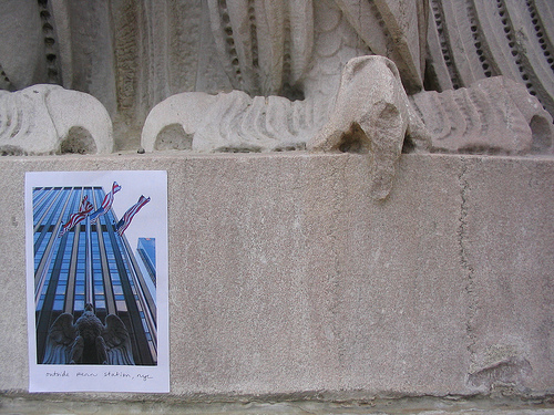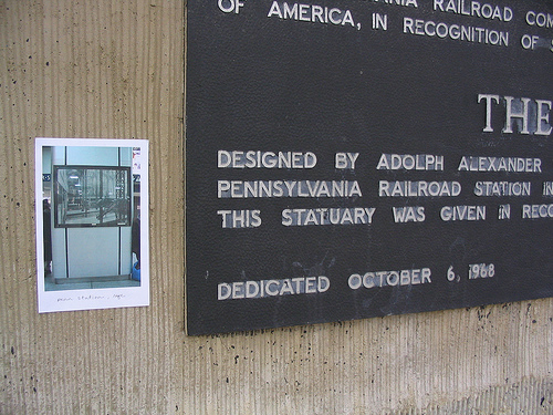 Memories of the old Penn Station inside the current sad one, next to the KC plaque that describes the statuary in the Eagle Scout fountain.