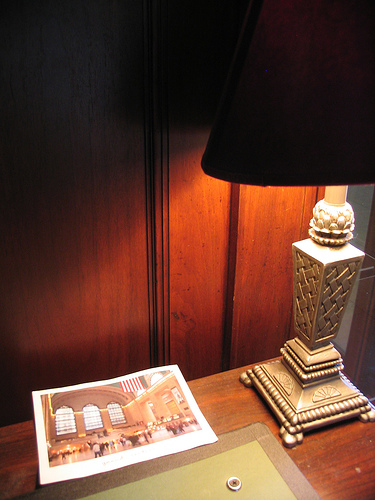 This desk is around a corner from the main lobby of the station. It looks like there used to be a guestbook here.