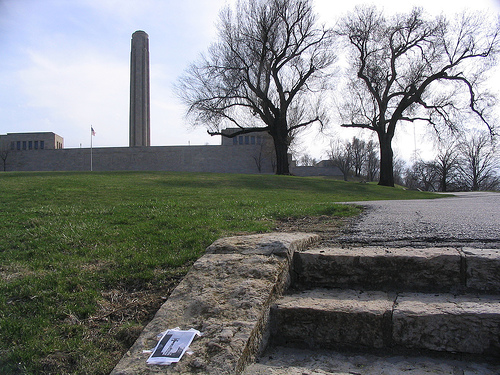 March 20th, 2007 4:08 PMI took some digital pictures of monuments/landmarks in New York, printed them and cut them in approximate shape of polaroids, and taped them (hey, we had tape; who uses rubber cement anymore?) to their counterparts in....Kansas City, Missouri. (I realized after the fact that some of the ones I picked were more landmarks than monuments.)