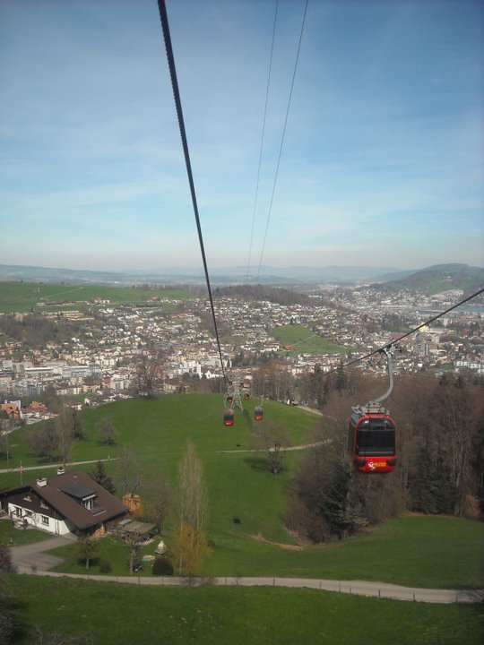 Looking out of our gondola at the others, here you can still see the city of Lucerne a little bit...