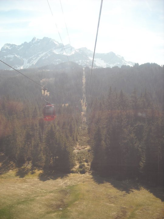 Mt. Pilatus is in Lucerne, Switzerland, and is a part of the Alps that is very easy to get to the top of. The gondola ride up is fairly inexpensive, and so fun! (kinda scary at times....scaling the side of a mountain). This is my gondola! #43 (: