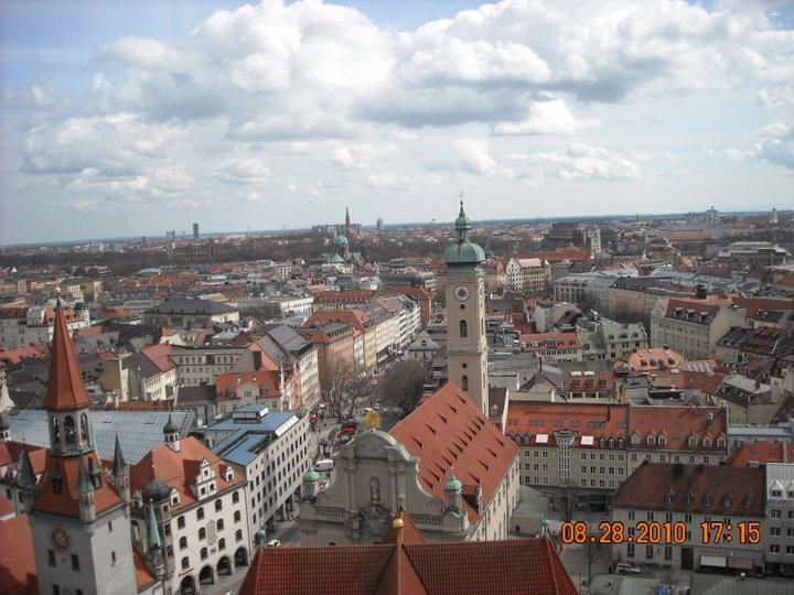 One view from the top of the tower. Probably my favorite view -- the architecture of the buildings in Munich is breathtaking