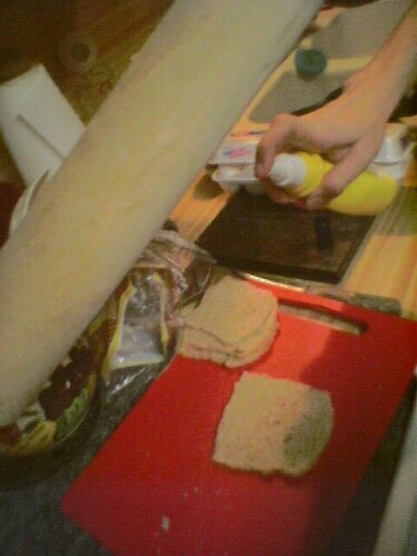 It began innocently enough. As wildbear posed for a picture of cracking the first egg into the pan she suddenly realized that the cap was on the cooking spray and, in a fit of panic and rage, struck the can against the counter, sending the top flying into the far reaches of the kitchen. I knew, as I heard the plastic land on the linoleum that what we would soon create would be a monstrosity.