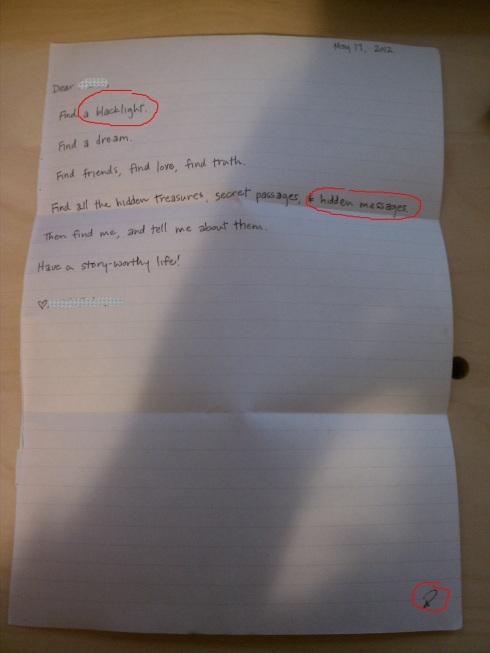 I hope your friend manages to recognise the clues (and has a black light)! This is a really nice idea for a letter, and one which I may use at some point.