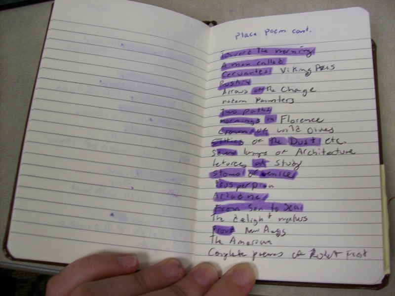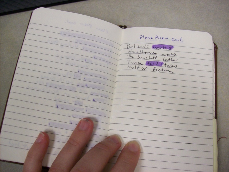 I decided to compose a poem using only the titles of the books on the shelf. ( Words in italics are the ones which I added).