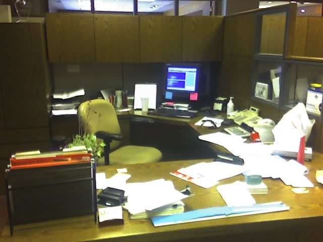 My boss asked why I moved things around. I am suspicious that he is in on it to, being a boss, so I made up some bull shit about it being more open and condusive blah blah blah. I did just realize how disorganized my desk is.