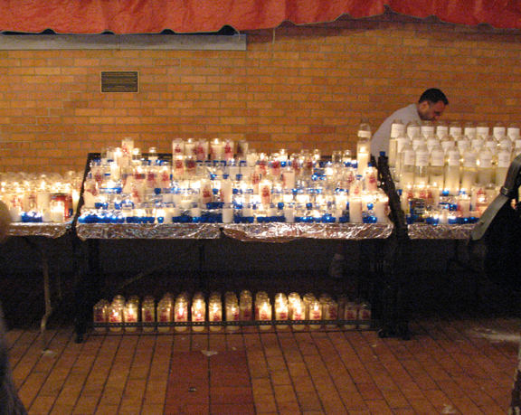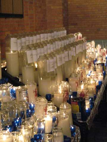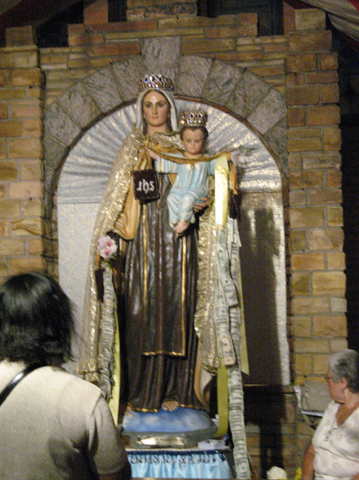 I know, I know...you're waiting for the good part. Well, the festival takes over all the streets around the church of Our Lady of Mt Carmel. As I walked around the fair on that final night, I passed by a shrine to Our Lady of Mt. Carmel. I realized that this was an SF0 moment. I entered the shrine area, but was feeling a little uncomfortable. Having been to Thailand, I know that it is easy to inadvertently be disrespectful in a place of worship, and while I might not be Catholic, I do respect other people’s spiritual practice. I approached a table where a man and woman sat and they were very friendly, asking if I’d like to make a prayer. I said yes and they handed me a candle, two small packets wrapped in plastic, and a postcard. I walked up to the alter but decided I would pray in my own way and home and slid the items into my bag. main_thealter51122716.jpgthealter51322717.jpgthealter51222718.jpg