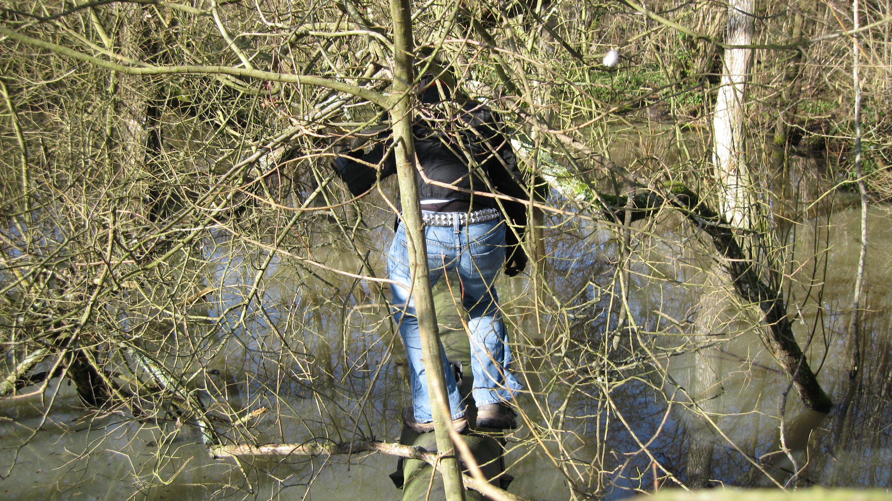 Yoda has made it to safety. I am going to break every damn one of these twigs to get them out of my way. After five minutes of that I gave up and just squeezed past them. It's harder than it looks, honest.
