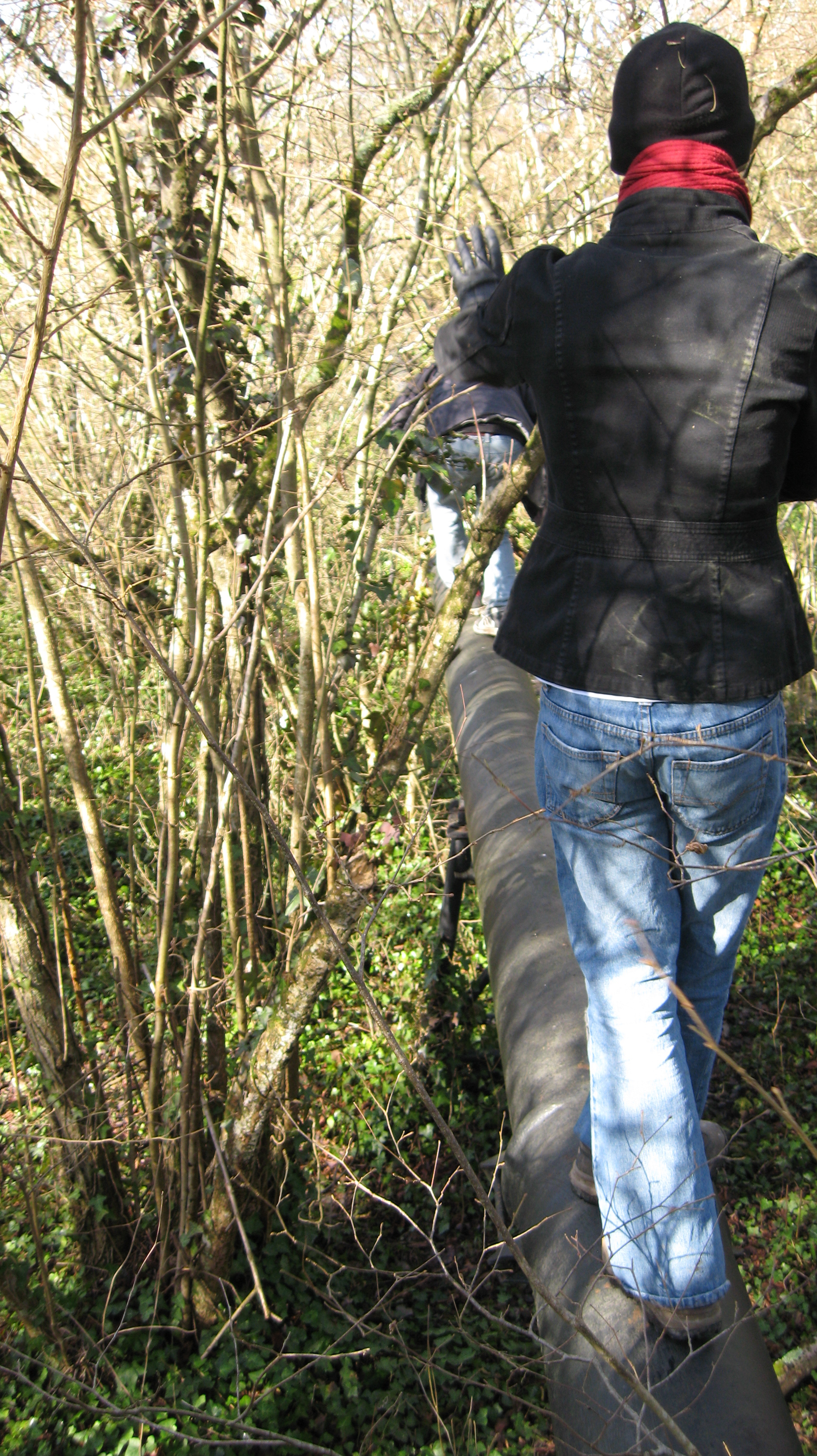 I love the straightness of the line you walked on! And also the obstacles that you had to cross. That pipe-walk was great! I would have loved to do it myself :) Can you guess at the length of the pipe? Or how long it took you to "cross" it?