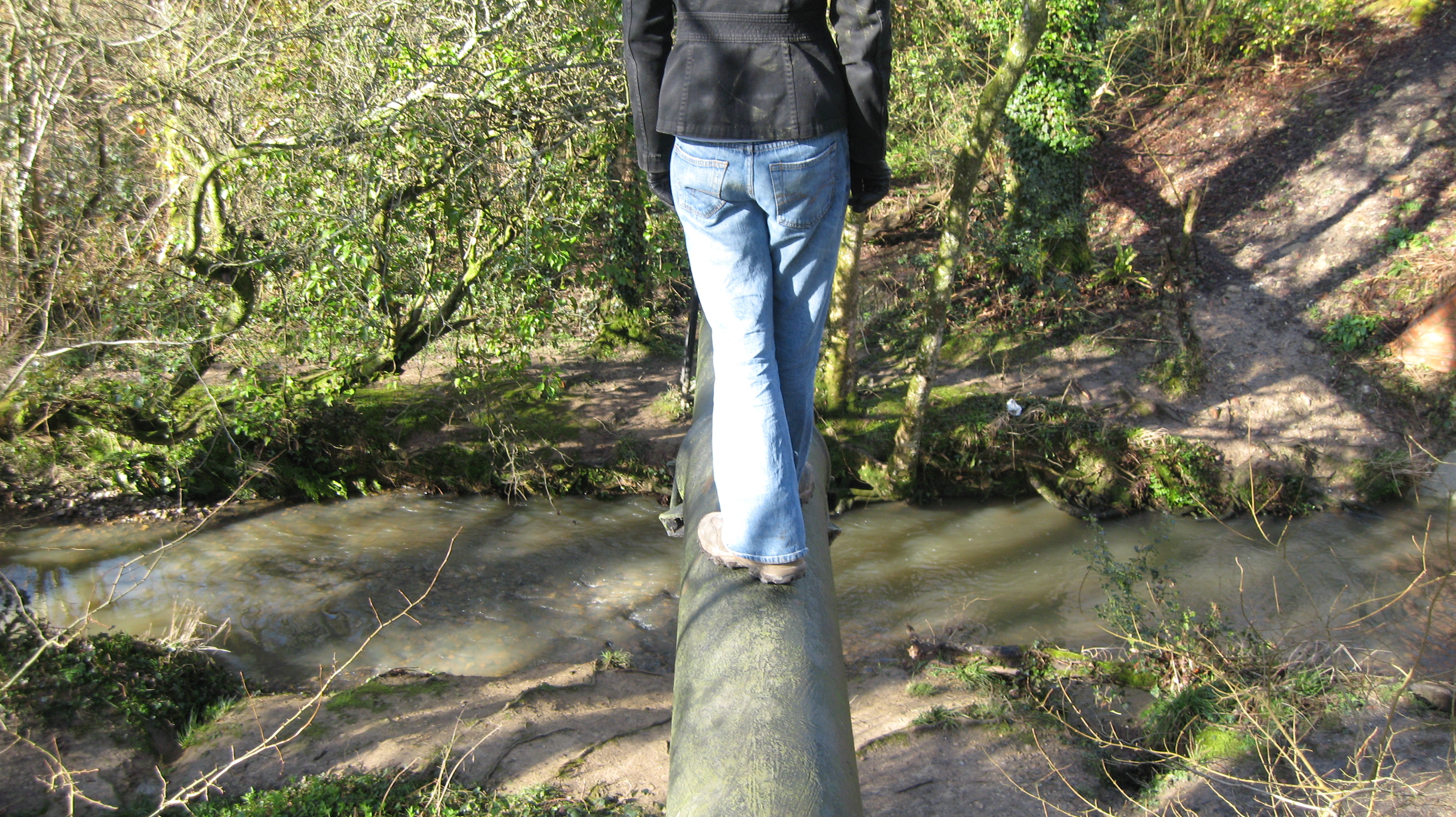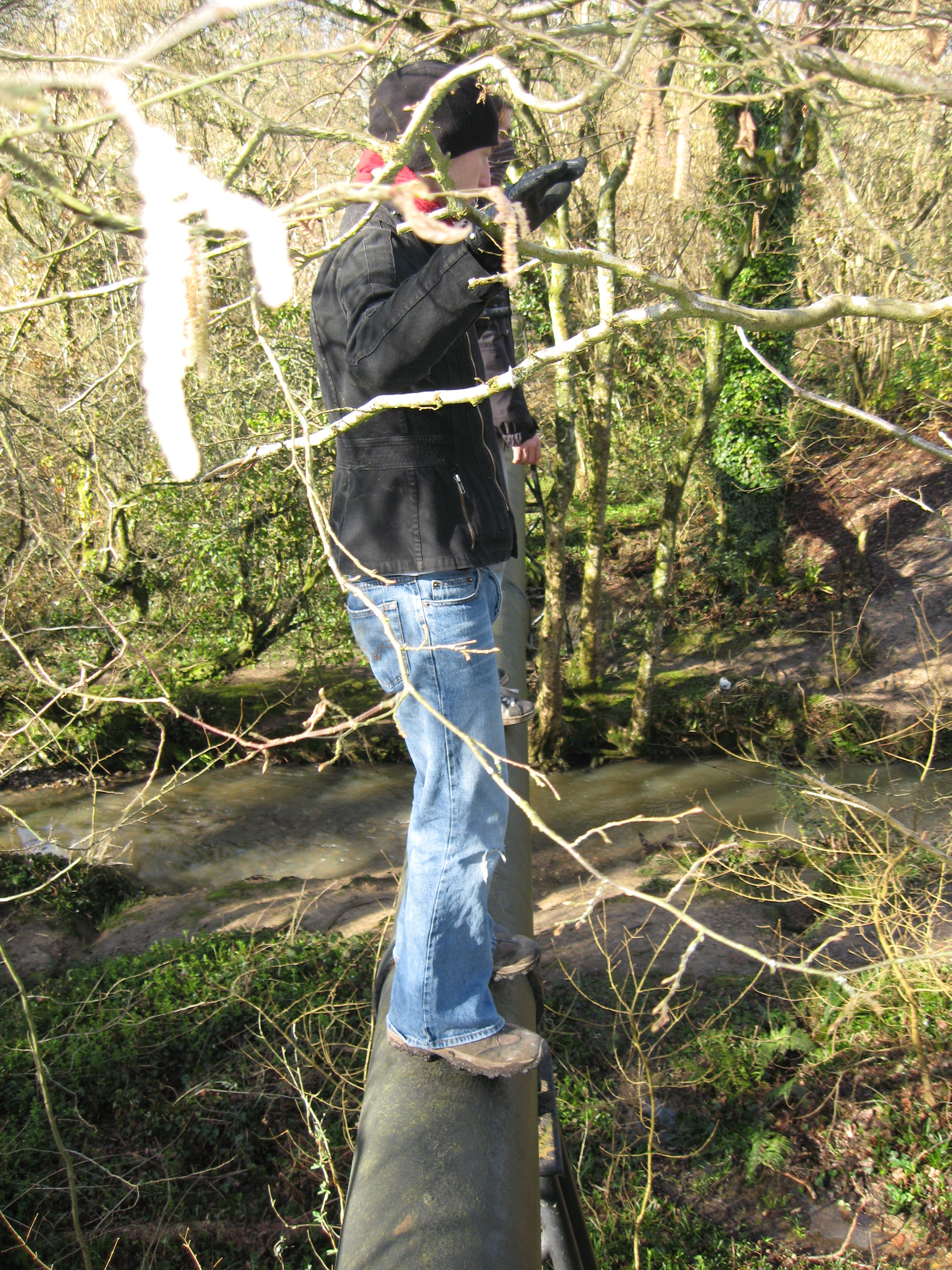 See, now I can do all sorts of balancing because we are back at ground level, even though the pipe is exactly the same. Fear does wierd things to your body.