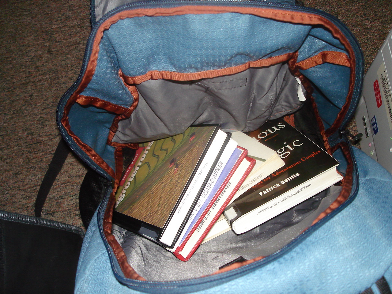 To establish a pattern of "deviance," and because I can only fit so many books in my backpack, I will take a few trips to the university and public libraries. Why do I not just return the books immediately (assuming I don't want to read them)? Most libraries dump checkout records once materials have been returned for privacy reasons (as well as "we don't want to keep track of a ton of data" reasons), so if I keep books out for awhile there's more opportunity for the Feds to request my records.
