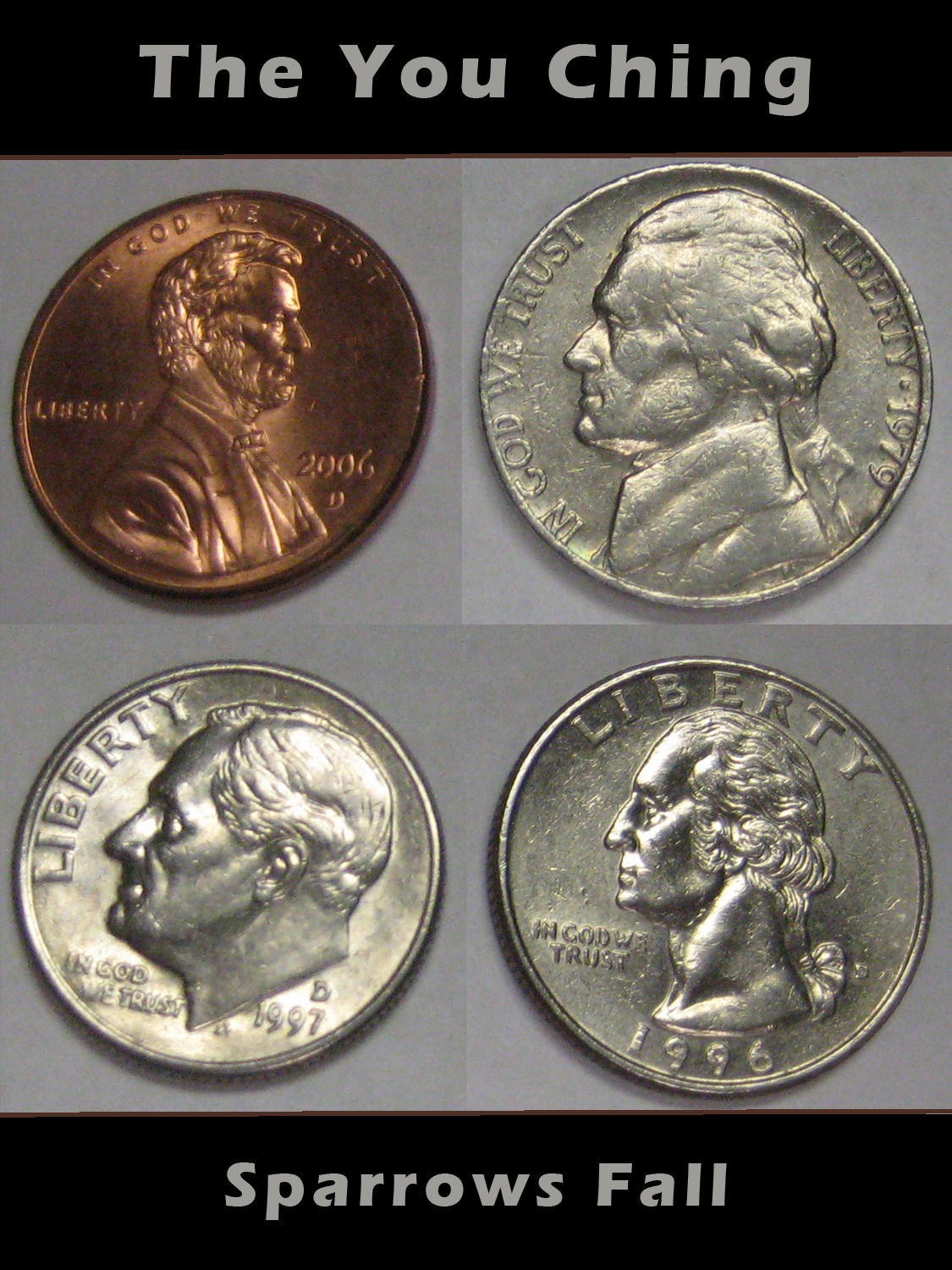 So, take the change from your pocket, shake it around in your hand for a bit while thinking about your question ("Should I ask that girl out?" "Should I quit my job?" "What should I do about that pizza in my fridge?"). Maybe breathe on them a bit, too. Toss them out in front of you and watch how they land.