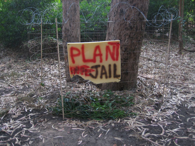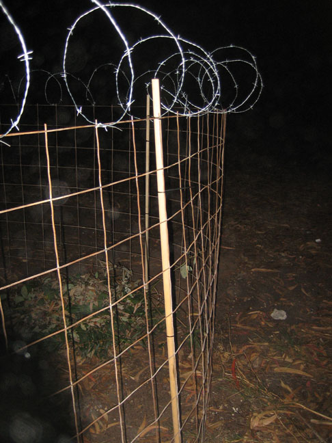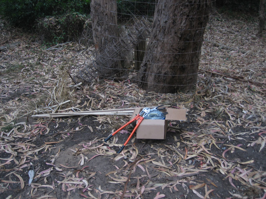Golden Gate, and other parks in San Francisco, are being invaded by foreign plants. I did my part and erected a containment facility to detain the enemy combatants. I gathered some materials to make a fence. Barbwire, poles, and fencelike material. Getting my hands on barb wire was difficult since no hardware store in or near the Bay area would sell it.