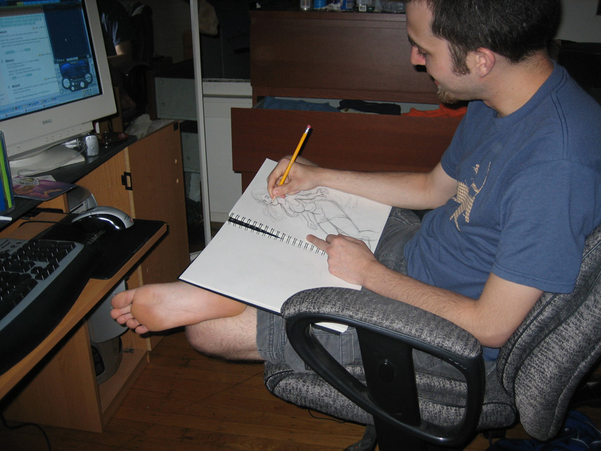 I put a lot of my favorite tunes into one mix. If you like house music, you should listen to the mp3. I dropped by Enversi's and he drew some sketches while we listened to music. He made some really cool ones. and here they are.