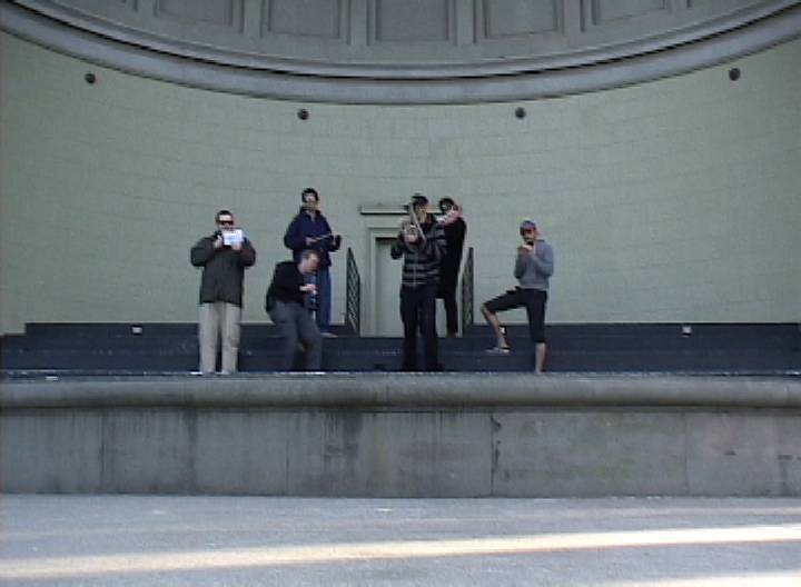 When we arrived at the park bandstand, there were some break dancers on stage. While we waited for them to leave, we assembled in a large fountain in the middle of the courtyard and staged a performance.