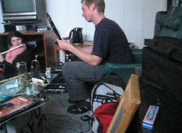 and Ian Tyner, guest musician from Chicago, on cowbell