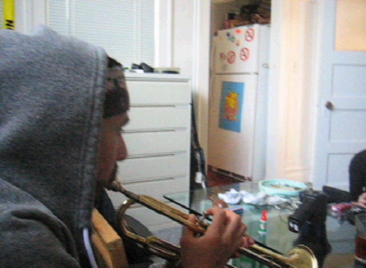 I discovered quickly that the only sounds I can coax from a trumpet on short notice distinctly resemble flatulence... Instead, I settled on flailing around on the flute. I had a vague memory that flutes had basically the same fingering as a saxophone, so that helped, but I certainly didn't master the proper embouchure to illicit anything akin to normal flute noises. I get that pursing your lips one way as opposed to another is the key to both the flute and the trumpet, but seriously, trumpets only have three buttons? What's up with that?